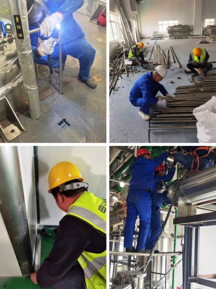 公司黨委書記、董事長宋敏平每日深入改造一線,實地查看項目進(jìn)度,詳細(xì)了解項目改造時間節(jié)點和施工安全保障措施等情況,與項目相關(guān)人員就項目推進(jìn)事宜進(jìn)行深入交流,并為放棄休假、堅守項目現(xiàn)場的人員送上節(jié)日的問候,對他們在假期期間搶工期、抓進(jìn)度表示感謝。提取車間項目改造人員與車間員工一同加班加點加油干,力爭在節(jié)假日完成管道保溫及項目收尾工作;污水改造項目設(shè)備、材料及人員進(jìn)場;合劑車間施工人員各司其職、有條不紊、相互協(xié)作,對現(xiàn)場各工種做好安全技術(shù)交底,提前規(guī)劃現(xiàn)場施工平面圖,對支架布置、設(shè)備安裝及焊接質(zhì)量嚴(yán)格把控,以高質(zhì)量、高標(biāo)準(zhǔn)全面推進(jìn)項目施工按照既定計劃完成。