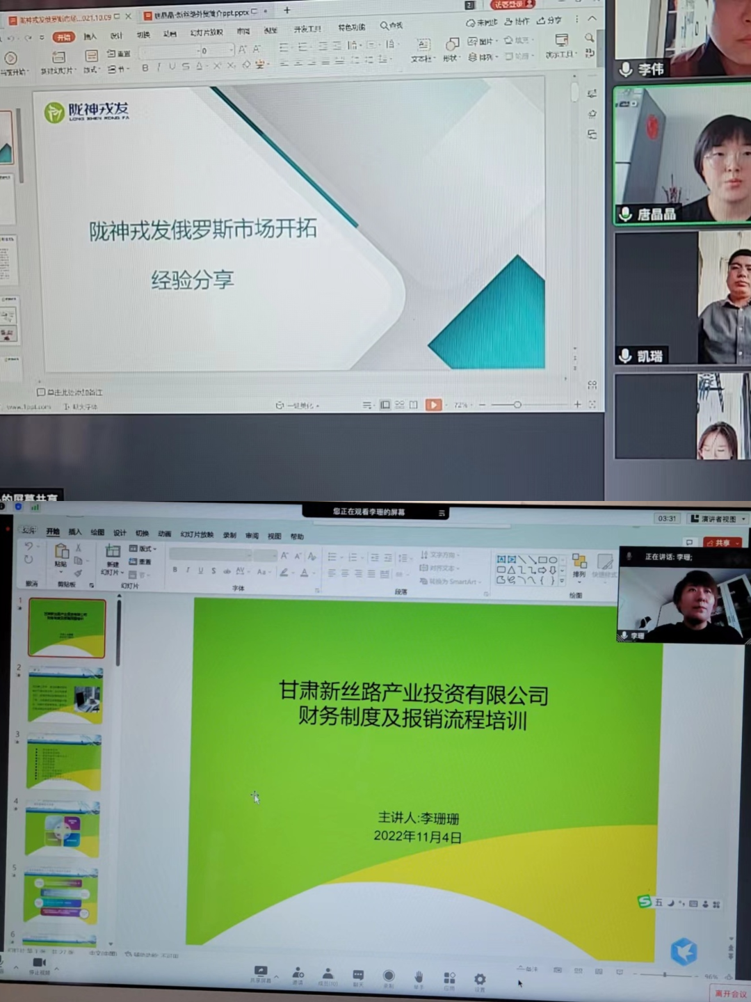 同時,公司本周連續(xù)五天安排了“走進(jìn)新絲路”、“產(chǎn)品境外注冊業(yè)務(wù)之俄羅斯注冊篇”、“公司主要經(jīng)營中藥材知識學(xué)習(xí)”、“財務(wù)制度和報銷流程培訓(xùn)”等學(xué)習(xí)培訓(xùn)和“成本分析”業(yè)務(wù)對接會,利用本次機(jī)會向新老員工進(jìn)行了系統(tǒng)地介紹和講解新絲路的發(fā)展歷程、業(yè)務(wù)操作流程、如何提升團(tuán)隊凝聚力及未來發(fā)展規(guī)劃等內(nèi)容。此外,公司還統(tǒng)籌協(xié)調(diào),積極參加了集團(tuán)公司和母公司組織的各項培訓(xùn),切實做到了居家封控期間學(xué)習(xí)、工作兩不誤,培訓(xùn)、業(yè)務(wù)兩手抓,持續(xù)激發(fā)員工干事創(chuàng)業(yè)熱情。