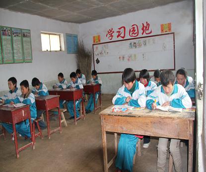 這些山區(qū)里的孩子離學校都很遠,中午他們坐在簡陋的教室里,吃自家?guī)У母闪,下?點學校提供一頓簡單的晚飯,同學吃完好早早趕山路,校長說起這些情況不免有些心疼。孩子們的物質(zhì)生活可想而知,他們需要翻山越嶺才能去趟縣城,他們不知道什么是肯德基、麥當勞,更不知道什么是游樂園。他們的精神文化生活也相當匱乏,孩子們對課外讀物的接觸極少,除了課本還是課本,他們沒聽過《安徒生童話》,沒看過《鋼鐵是怎樣煉成的》,更沒看過《富爸爸 窮爸爸》。但是物質(zhì)上的艱苦不能阻擋孩子對知識的渴求,文具用品省了又省,用了又用,他們沒有錢買作業(yè)本,就蹲在教室外的土地上,用樹枝在地上畫……