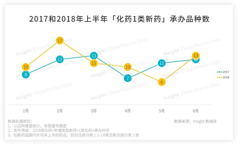 備注:本文統(tǒng)計數(shù)據(jù)來源丁香園 Insight  數(shù)據(jù)庫,統(tǒng)計緯度均為品種,企業(yè)均按照母企業(yè)計,數(shù)據(jù)統(tǒng)計截止日期為 2018 年 6 月 30 日,時間以 CDE 承辦時間為準。