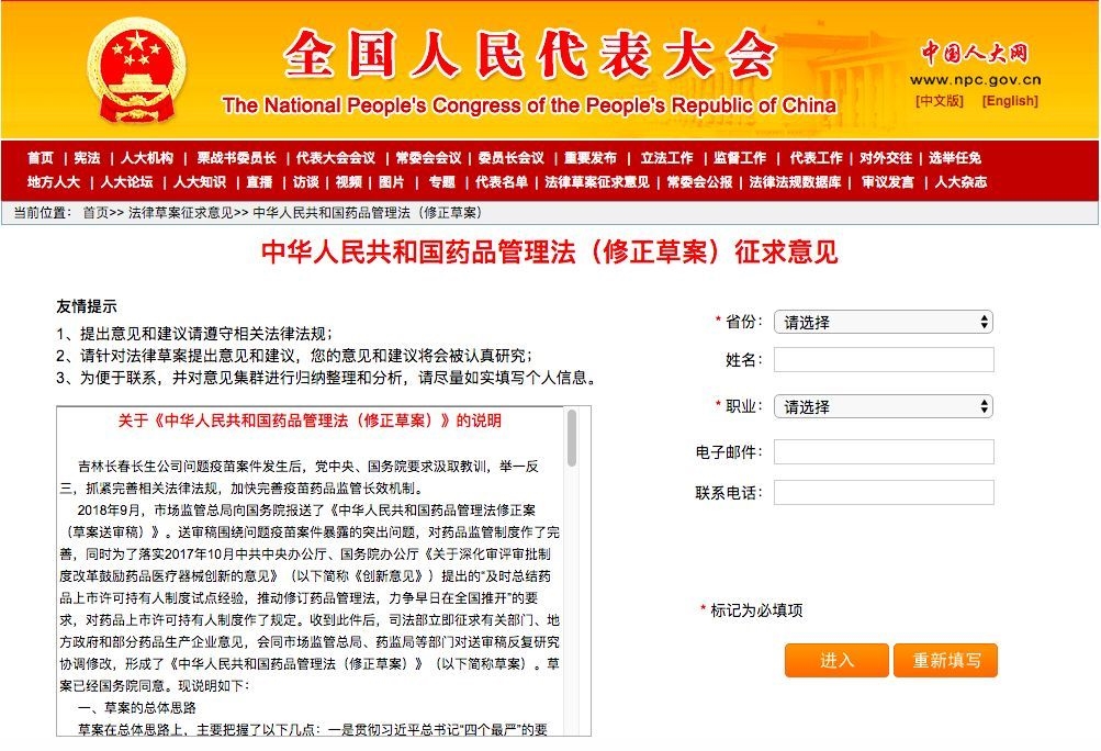 11月1日,《藥品管理法》修正草案在中國人大網(wǎng)公布,開始公開征求社會各界意見,征求意見截至?xí)r間為2018年12月1日。