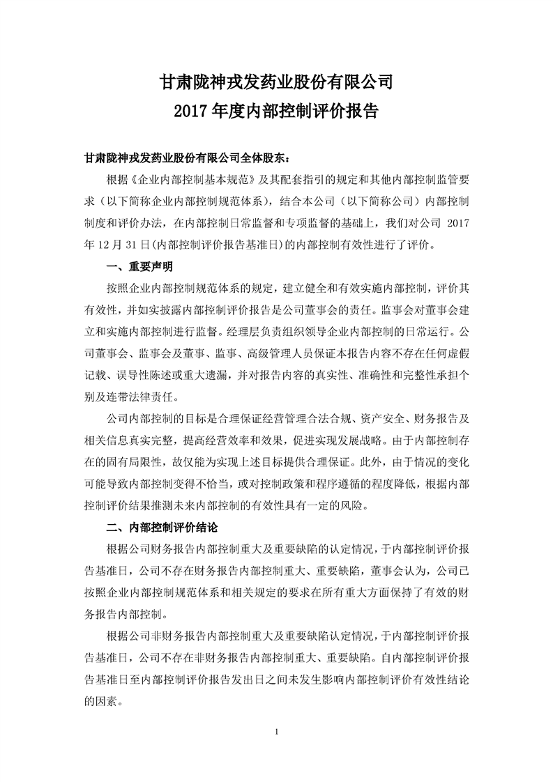 2017 年度內(nèi)部控制評(píng)價(jià)報(bào)告