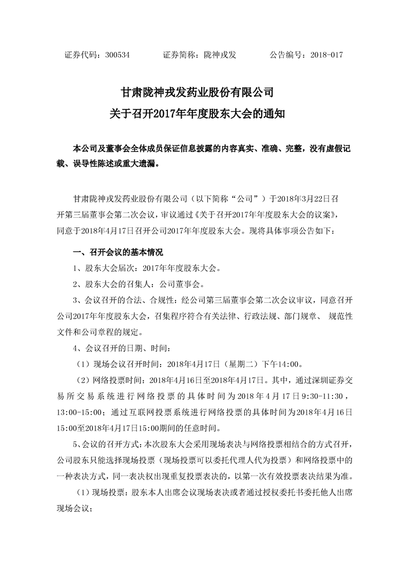 關(guān)于召開2017年年度股東大會(huì)的通知