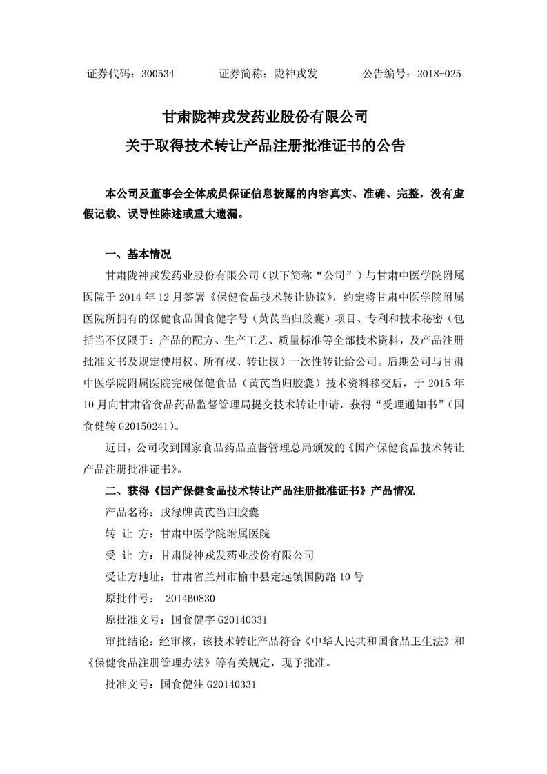 關(guān)于取得技術(shù)轉(zhuǎn)讓產(chǎn)品注冊(cè)批準(zhǔn)證書的公告
