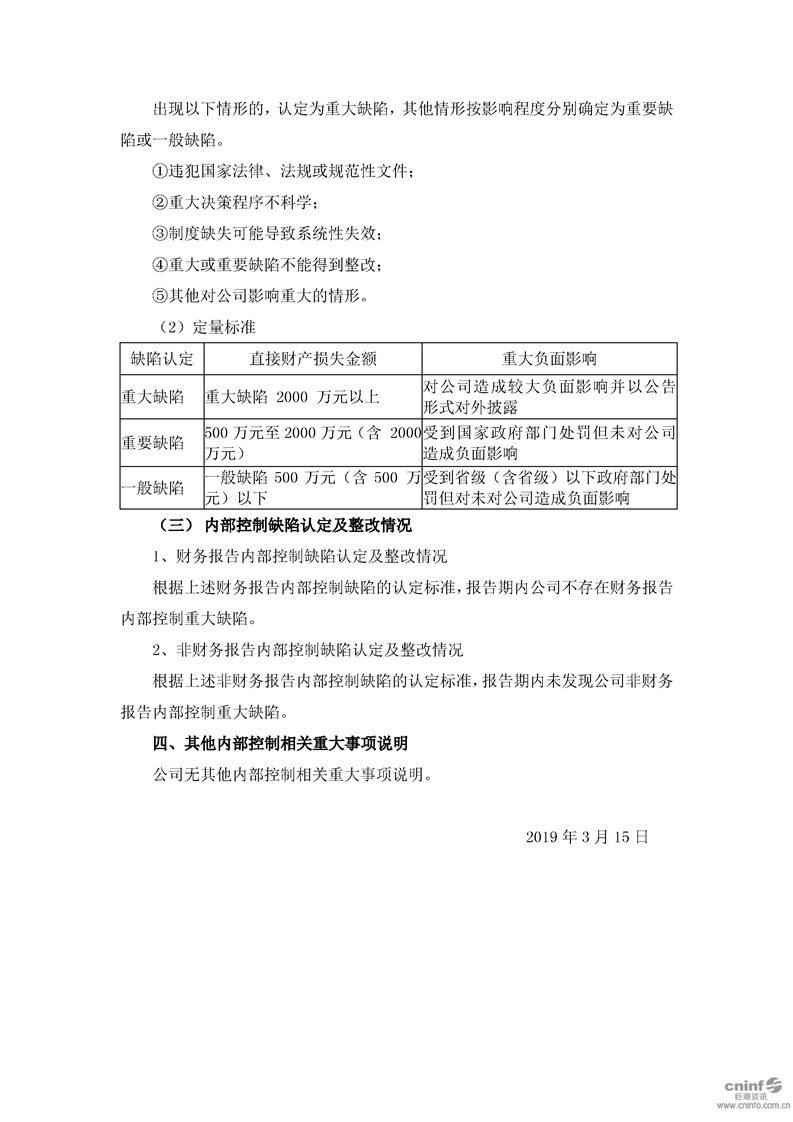 2018 年度內(nèi)部控制評(píng)價(jià)報(bào)告
