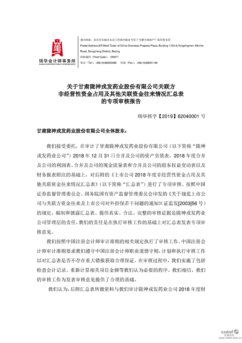 關(guān)于公司非經(jīng)營(yíng)性資金占用及其他關(guān)聯(lián)資金往來情況匯總表的專項(xiàng)審核報(bào)告