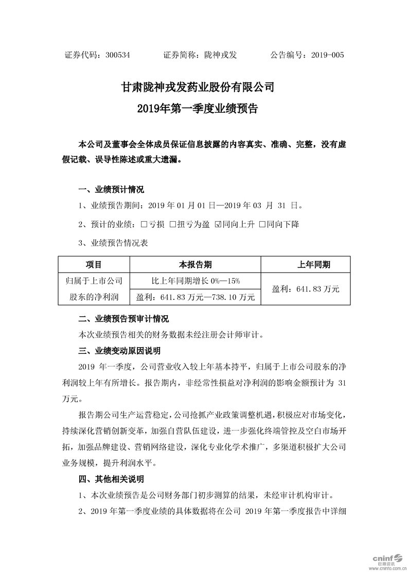 2019年第一季度業(yè)績預(yù)告