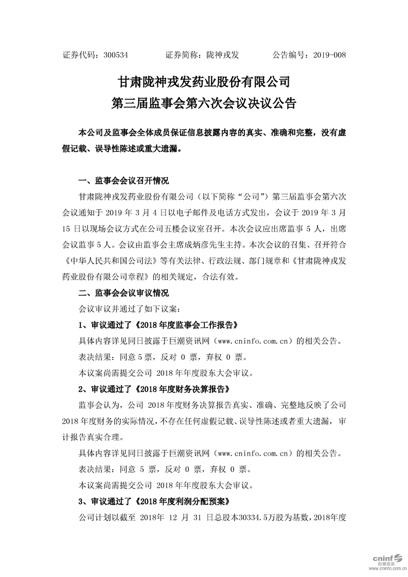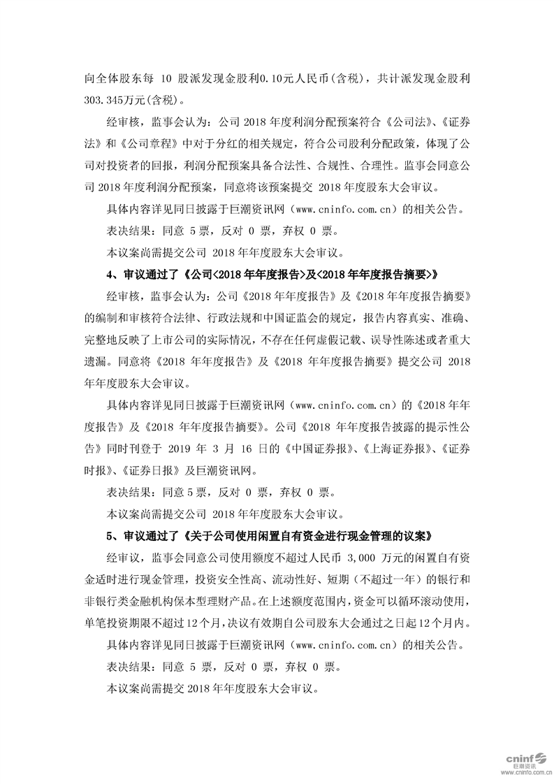 第三屆監(jiān)事會第六次會議決議公告
