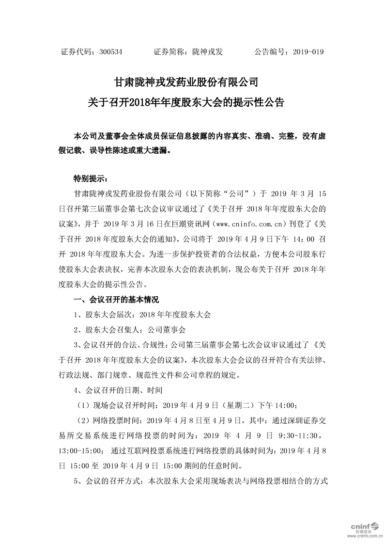 關(guān)于召開2018年年度股東大會的提示性公告