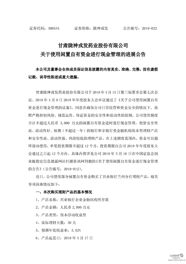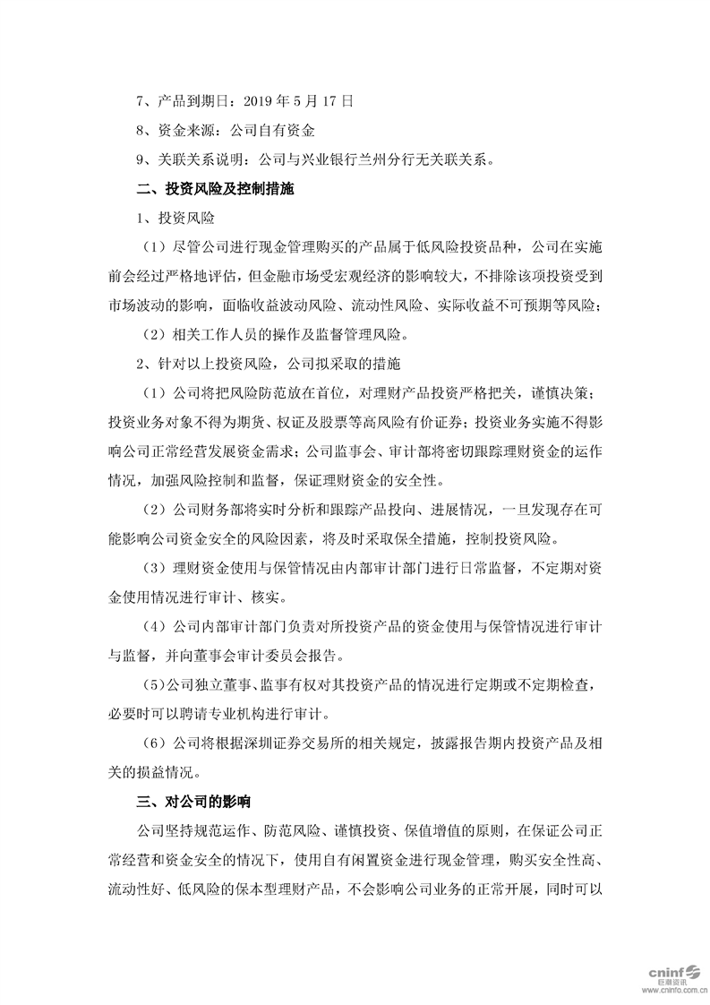 關(guān)于使用閑置自有資金進行現(xiàn)金管理的進展公告