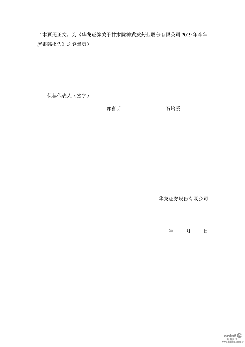 華龍證券股份有限公司關于公司2019年半年度跟蹤報告