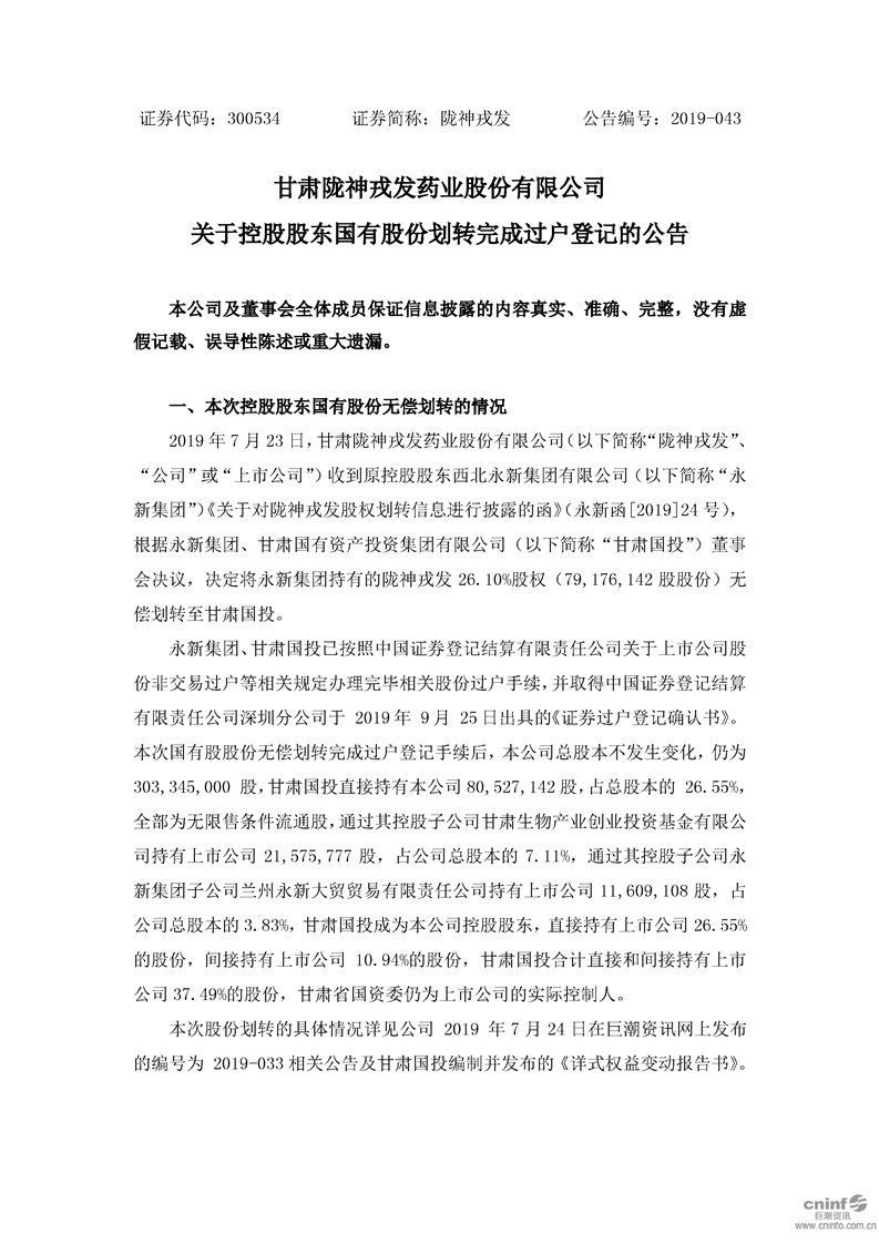 關(guān)于控股股東國(guó)有股份劃轉(zhuǎn)完成過(guò)戶登記的公告