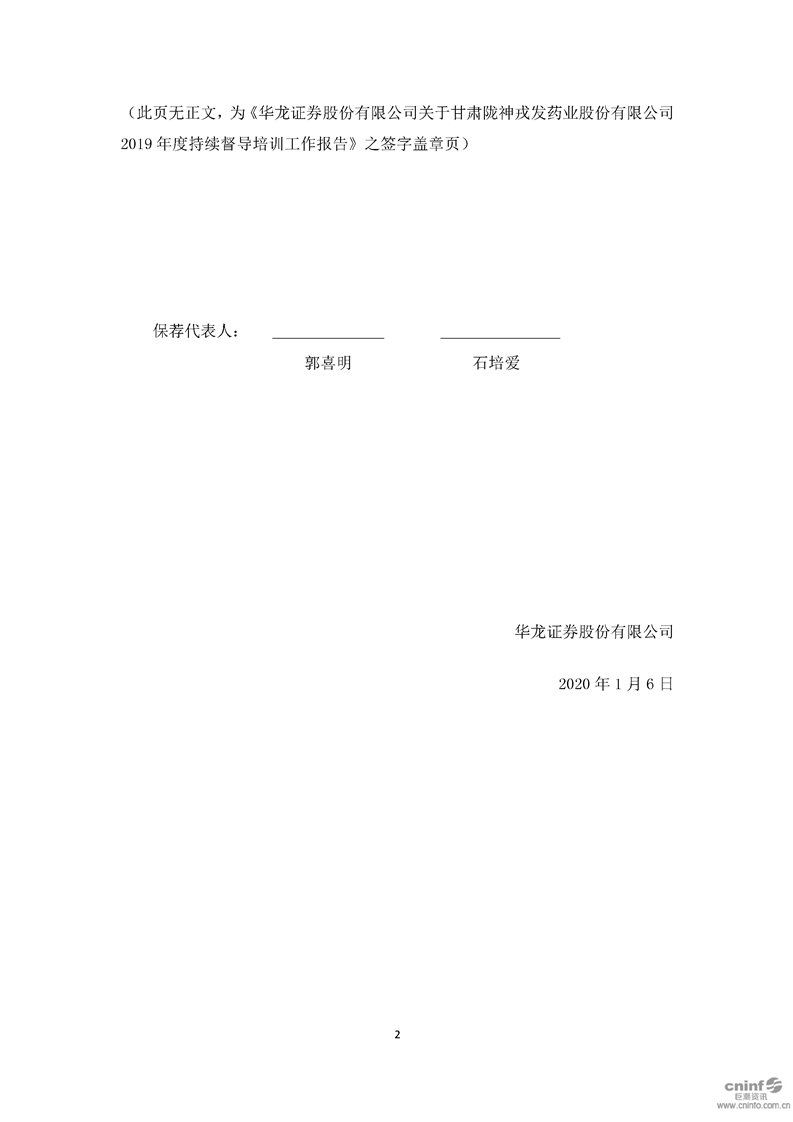 華龍證券股份有限公司關(guān)于公司2019年度持續(xù)督導(dǎo)培訓(xùn)工作報告