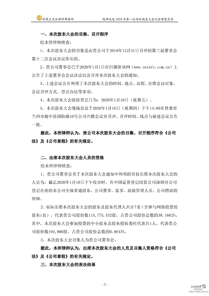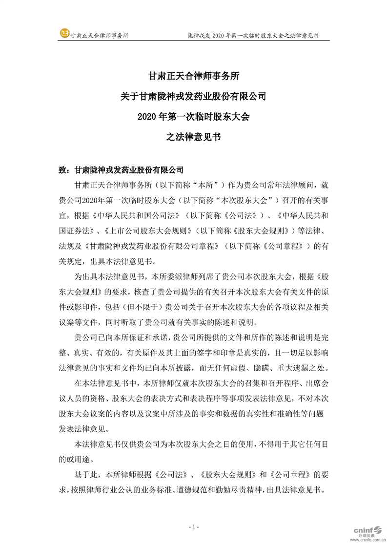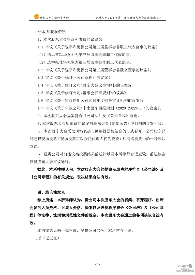 2020年第一次臨時(shí)股東大會(huì)之法律意見(jiàn)書(shū)