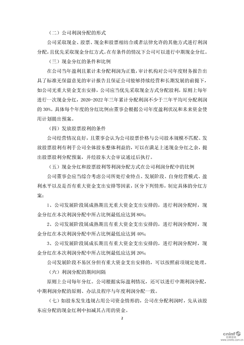 未來股東回報(bào)規(guī)劃(2020-2022年)