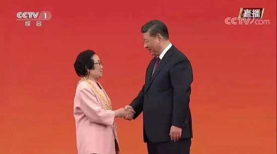 ↑習近平向屠呦呦頒授“共和國勛章”