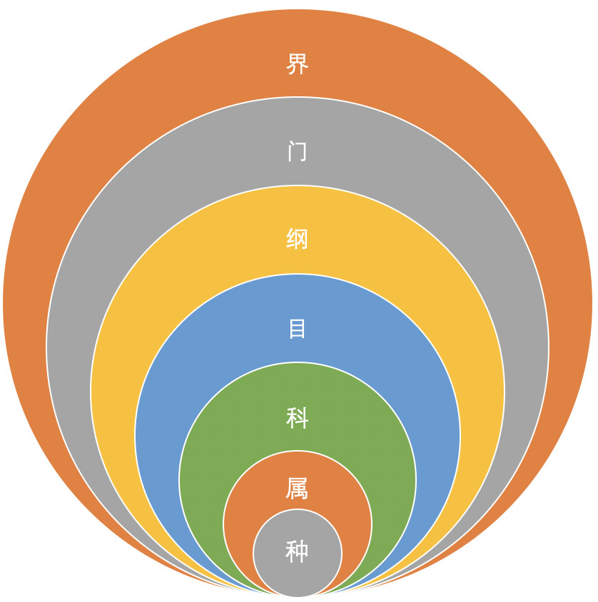 一般在生物學(xué)上,按照階元系統(tǒng)進(jìn)行分類,通常包括七個(gè)主要級(jí)別:界、門、綱、目、科、屬、種。種是基本單元。從界到種,范圍逐步縮小。