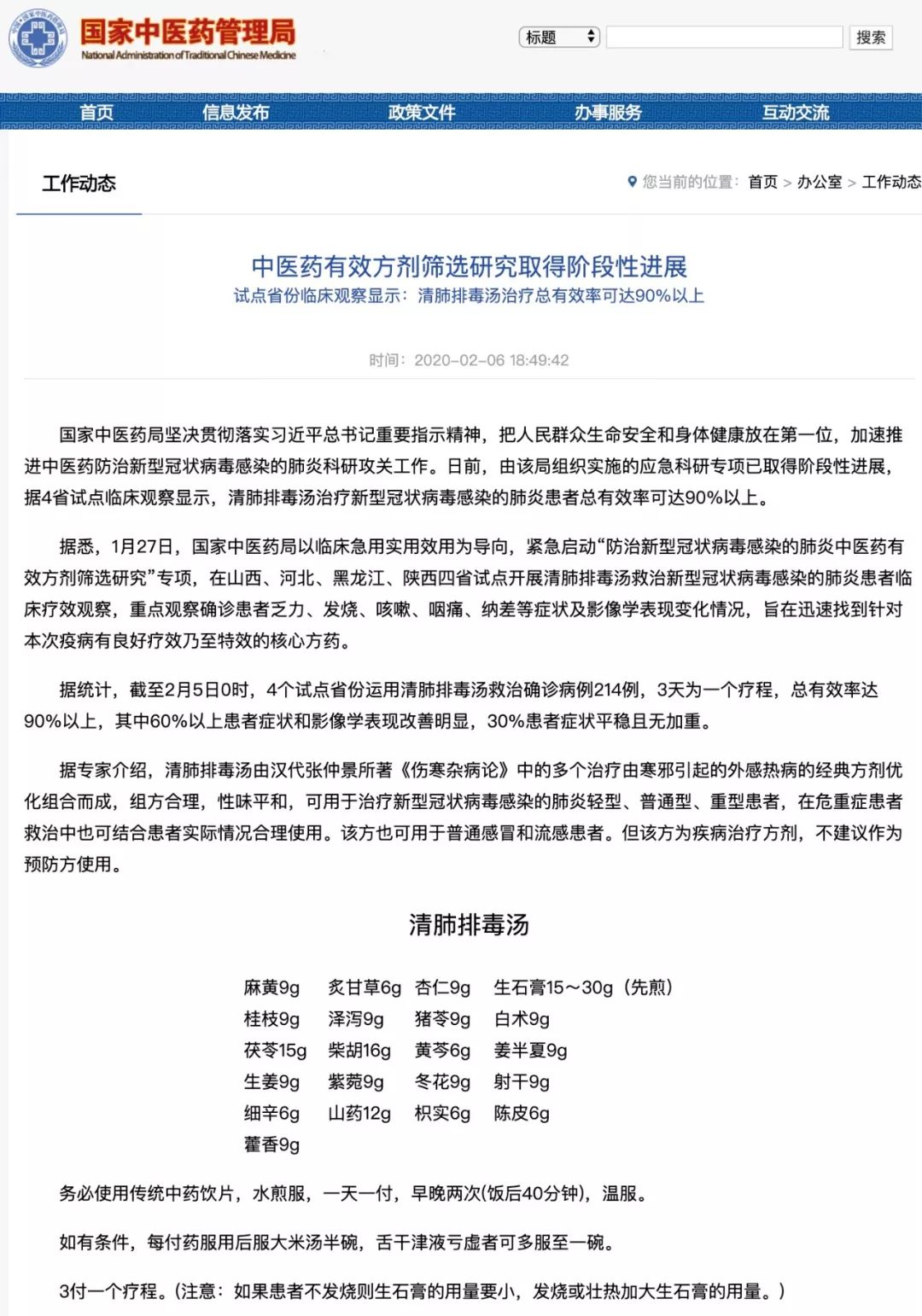 2月6日,國(guó)家中醫(yī)藥管理局發(fā)布了《中醫(yī)藥有效方劑篩選研究取得階段性進(jìn)展》。