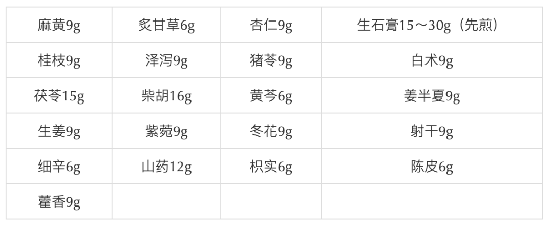 此外,國(guó)家衛(wèi)健委最新發(fā)布的新型冠狀病毒感染的肺炎診療方案中,也對(duì)中醫(yī)預(yù)防治療上給出了明確建議。因此,廣醫(yī)一院中醫(yī)科新冠防治組總結(jié)往年治療流感經(jīng)驗(yàn),結(jié)合嶺南氣候、水土、飲食、人文等特點(diǎn),擬定出外感發(fā)熱中藥協(xié)定處方。(注意此方適合外感發(fā)熱人群,健康人群不建議)