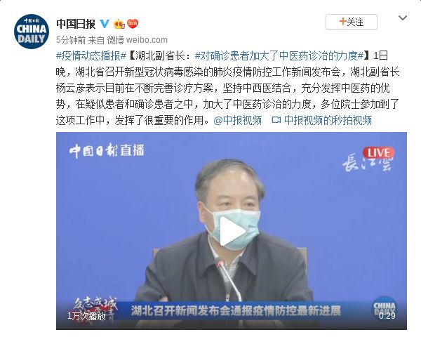 2月1日,湖北副省長(zhǎng)楊云彥表示目前在不斷完善診療方案,堅(jiān)持中西醫(yī)結(jié)合,充分發(fā)揮中醫(yī)藥的優(yōu)勢(shì),在疑似患者和確診患者之中,加大了中醫(yī)藥診治的力度,多位院士參加到了這項(xiàng)工作中,發(fā)揮了很重要的作用。