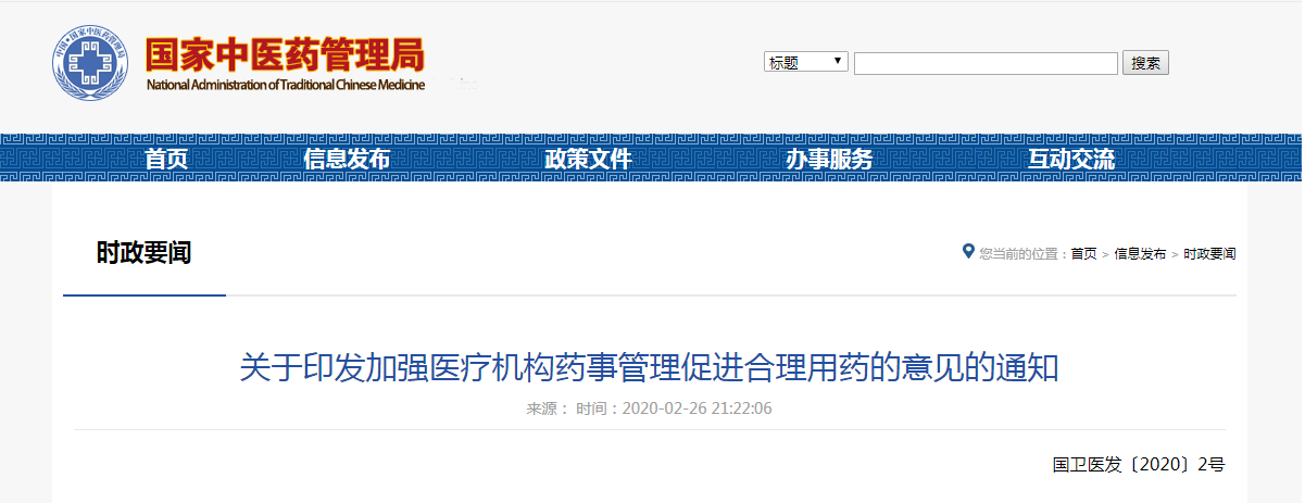 來源:國(guó)家中醫(yī)藥管理局 作者: 時(shí)間:2020-2-27 閱讀: