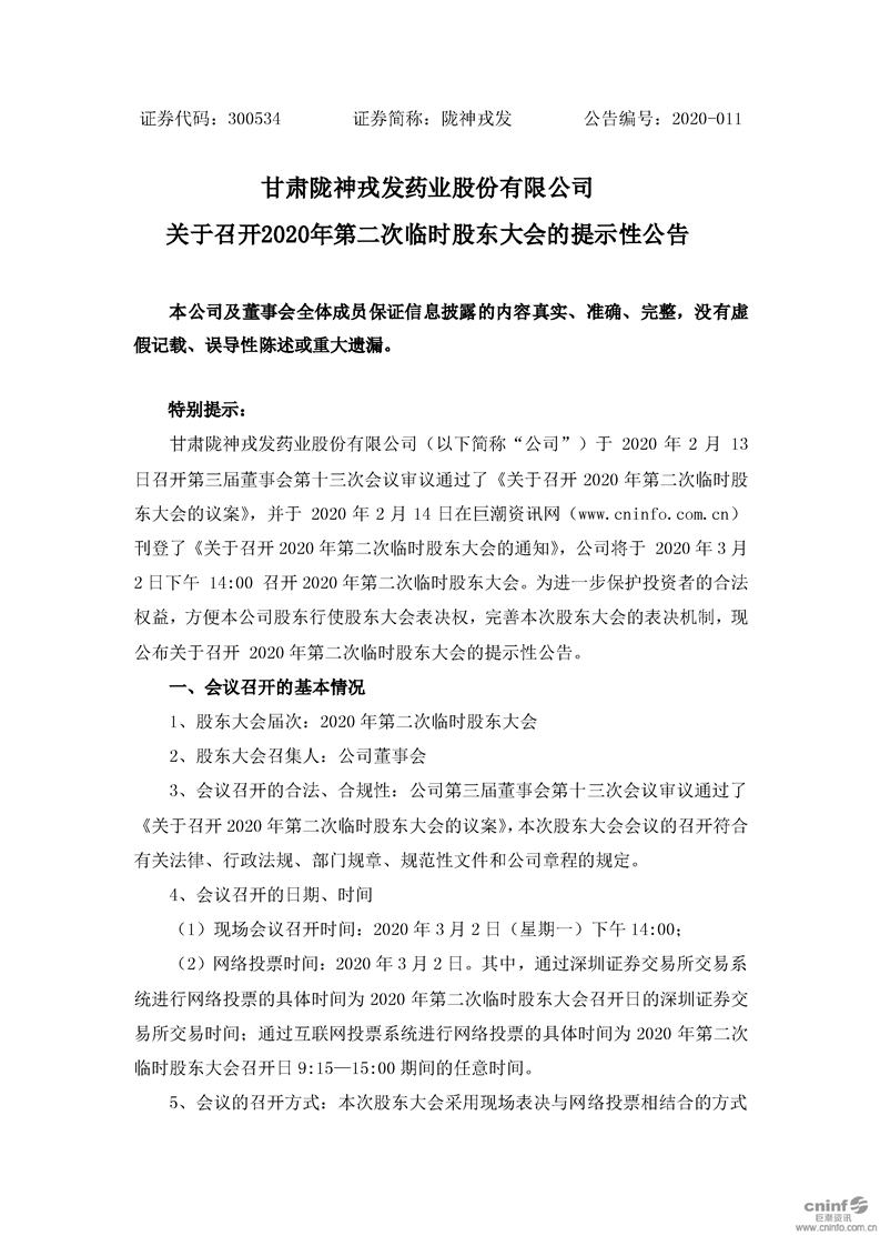 關(guān)于召開2020年第二次臨時股東大會的提示性公告