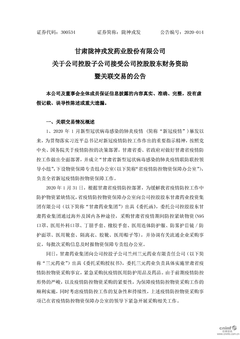 關(guān)于公司控股子公司接受公司控股股東財務(wù)資助暨關(guān)聯(lián)交易的公告
