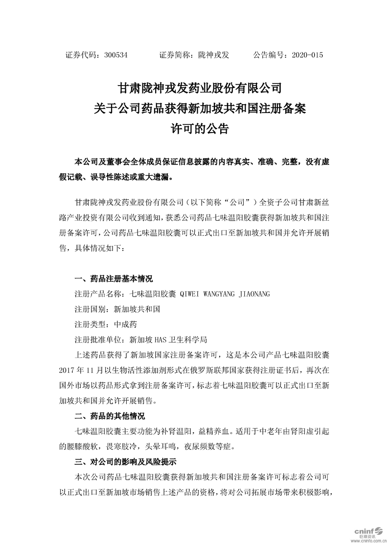 關(guān)于公司藥品獲得新加坡共和國注冊備案許可的公告