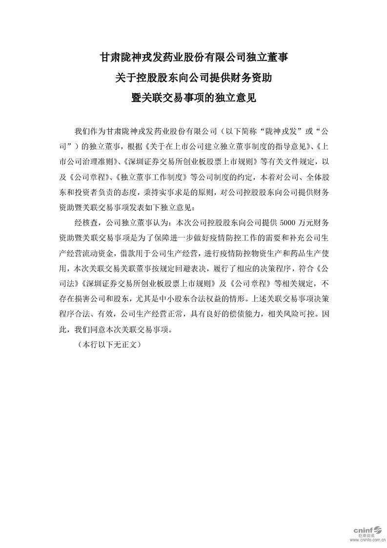 獨(dú)立董事關(guān)于控股股東向公司提供財(cái)務(wù)資助暨關(guān)聯(lián)交易事項(xiàng)的獨(dú)立意見