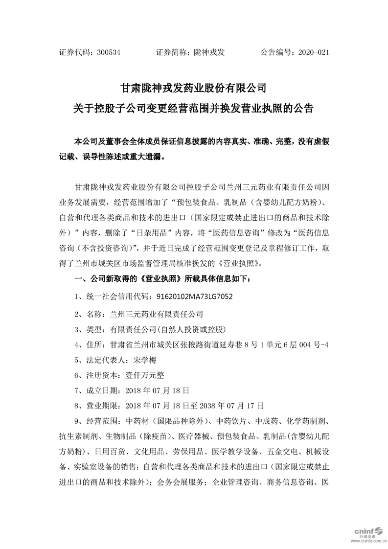 關(guān)于控股子公司變更經(jīng)營(yíng)范圍并換發(fā)營(yíng)業(yè)執(zhí)照的公告