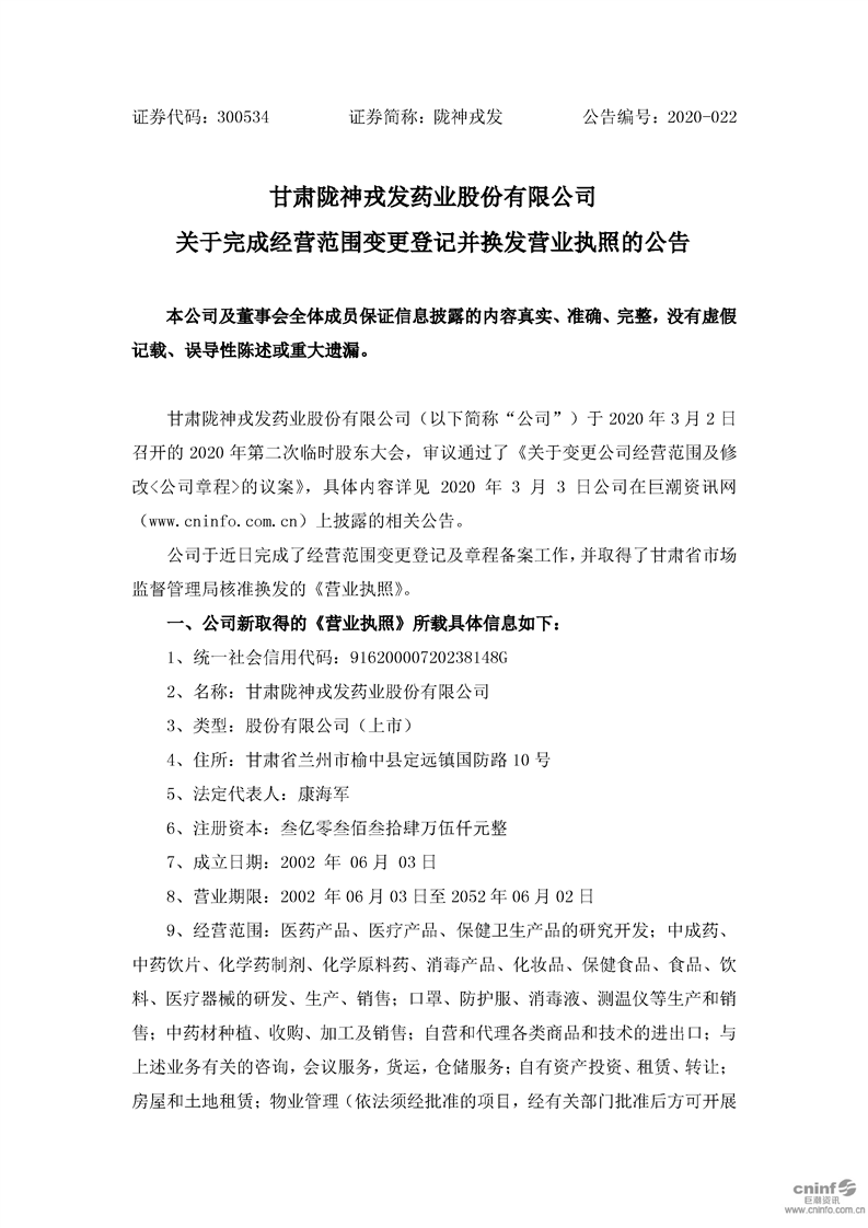 關(guān)于完成經(jīng)營范圍變更登記并換發(fā)營業(yè)執(zhí)照的公告