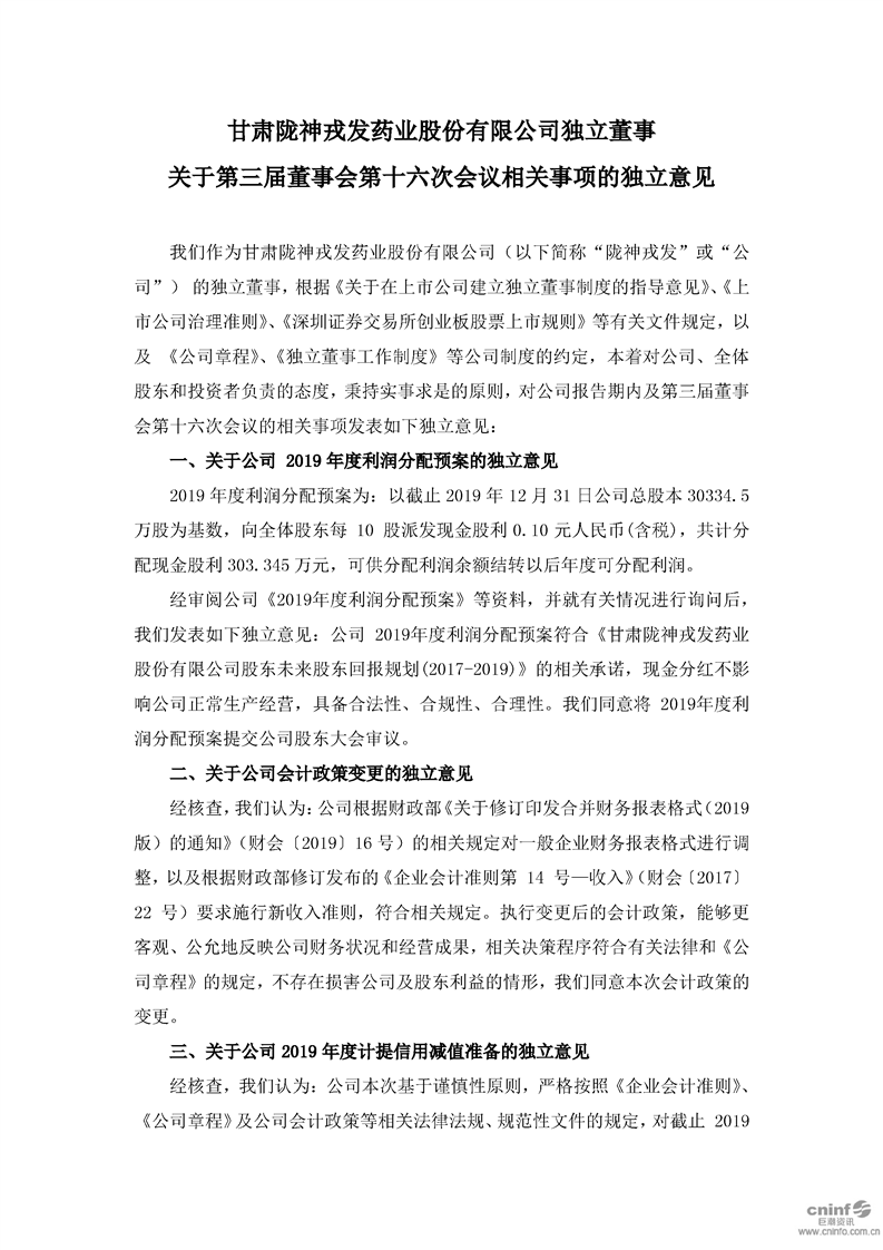 獨立董事關(guān)于第三屆董事會第十六次會議相關(guān)事項的獨立意見