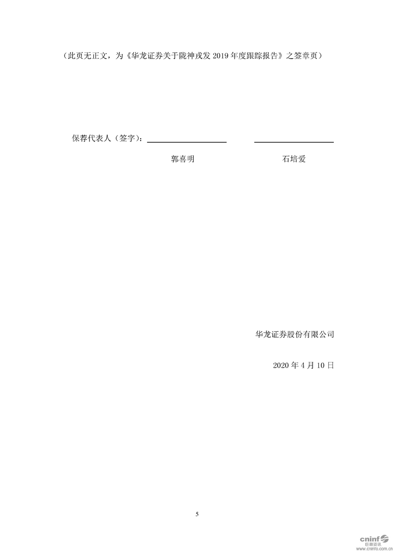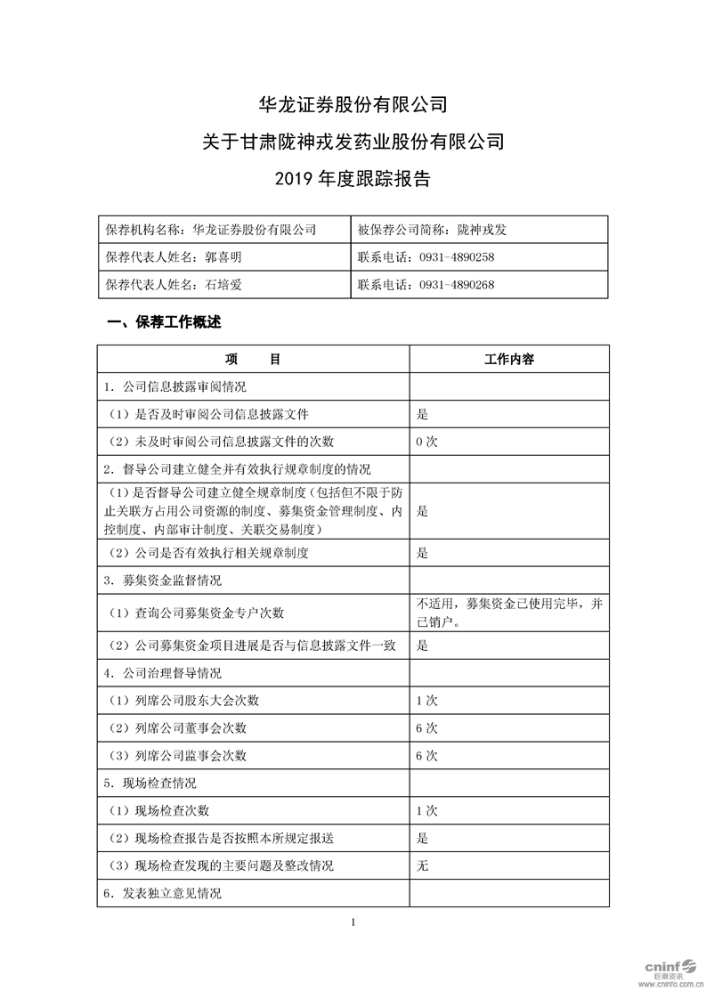 華龍證券股份有限公司關(guān)于公司2019年度跟蹤報(bào)告