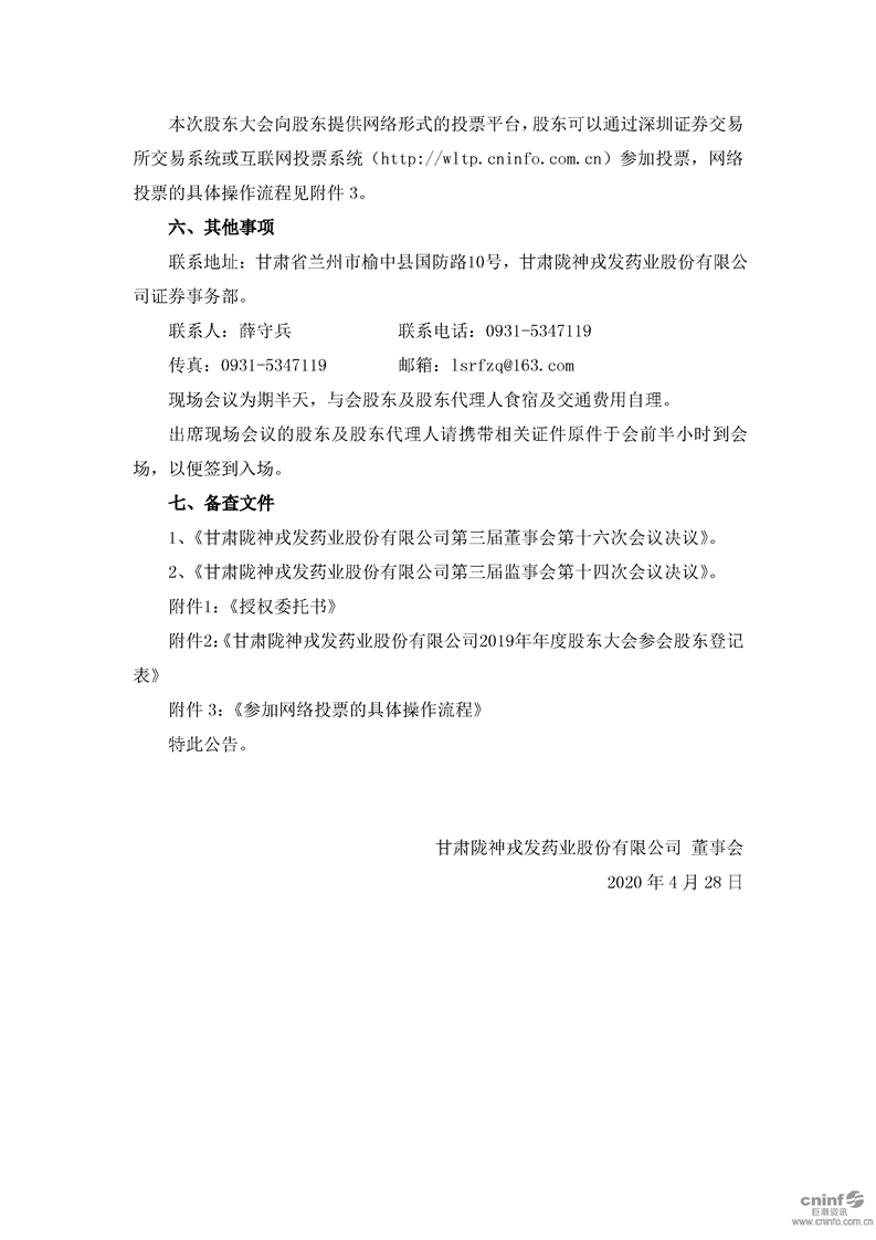 關(guān)于召開2019年年度股東大會的提示性公告