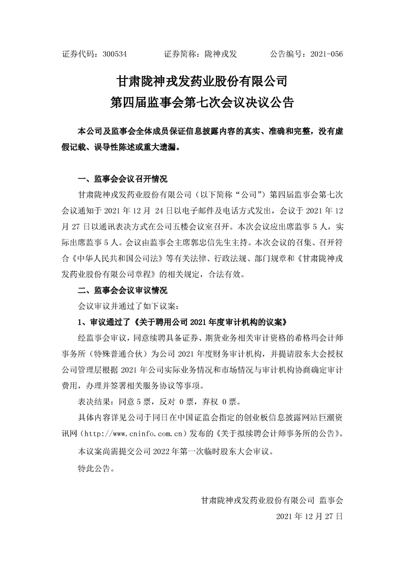 第四屆監(jiān)事會(huì)第七次會(huì)議決議公告