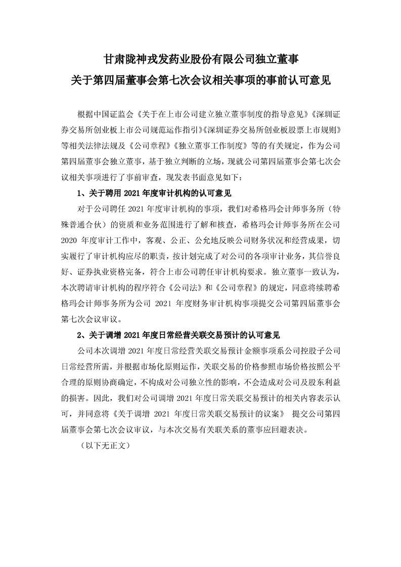 獨立董事關(guān)于第四屆董事會第七次會議相關(guān)事項的事前認(rèn)可意見