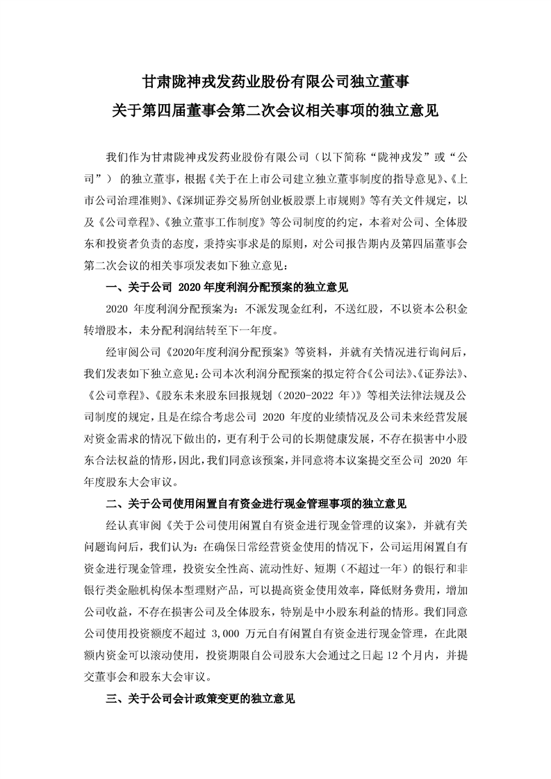 獨立董事關(guān)于第四屆董事會第二次會議相關(guān)事項的獨立意見