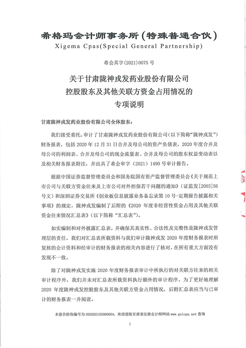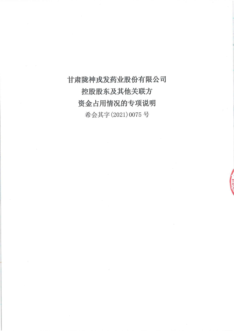 控股股東及其它關(guān)聯(lián)方資金占用情況的專項說明