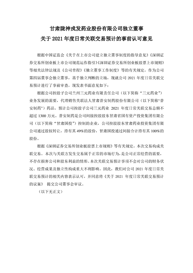 獨(dú)立董事關(guān)于2021年度日常關(guān)聯(lián)交易預(yù)計(jì)的事前認(rèn)可意見(jiàn)