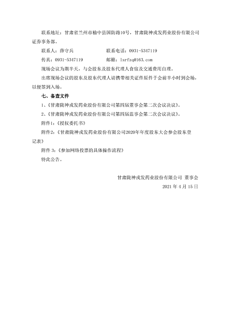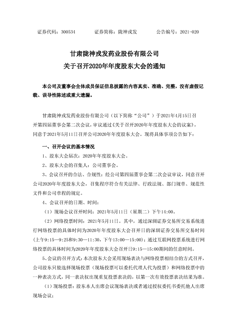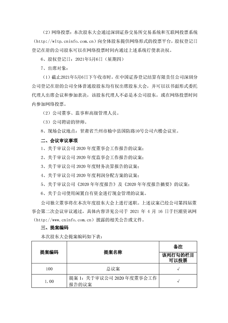 關(guān)于召開(kāi)2020年年度股東大會(huì)的通知