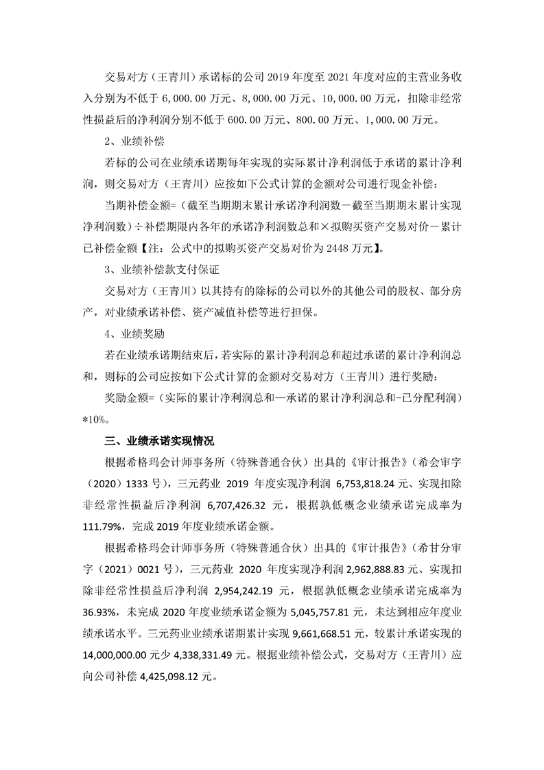 控股子公司2020年度業(yè)績(jī)承諾完成情況的專項(xiàng)報(bào)告(更新后)