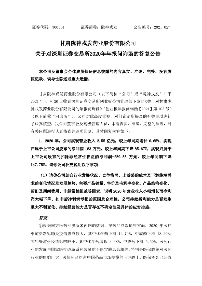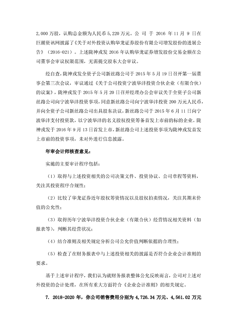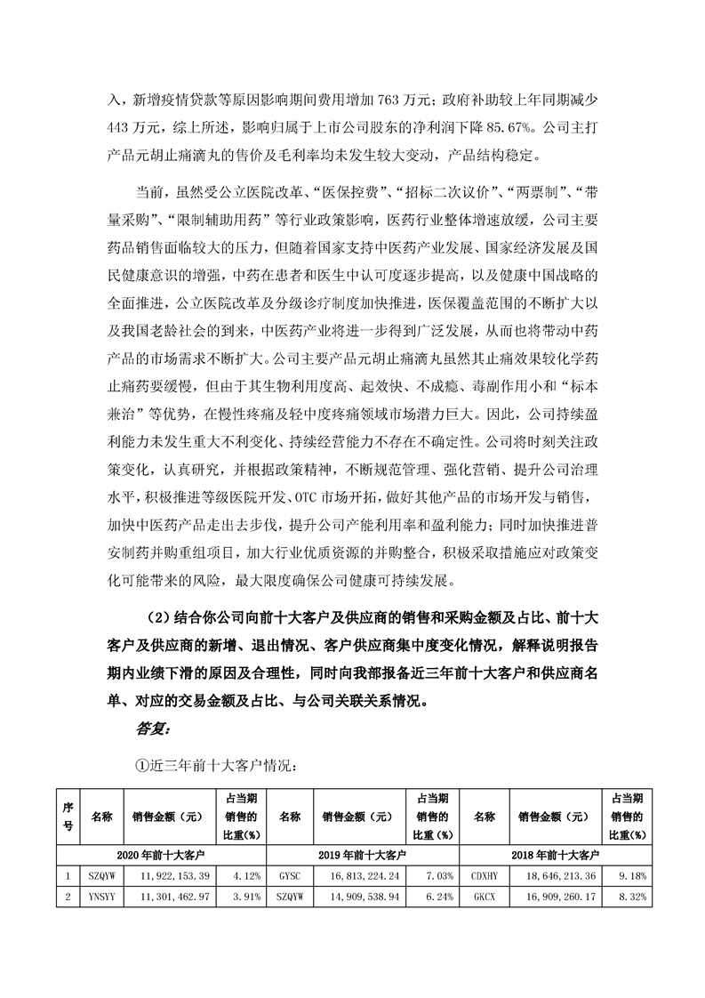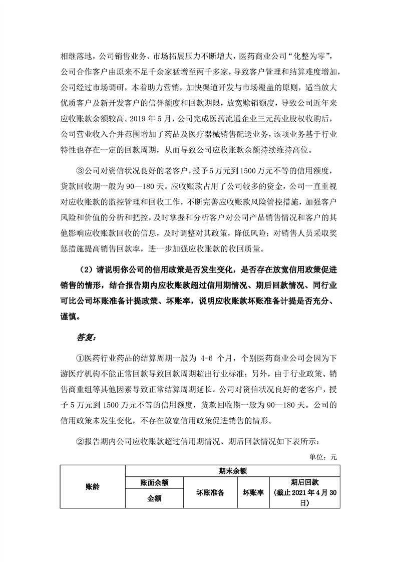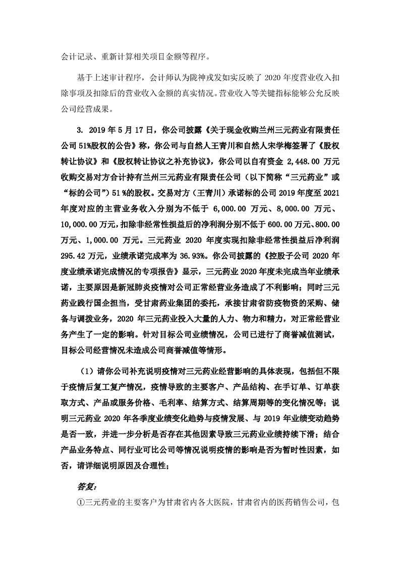 關于對深圳證券交易所2020年年報問詢函的答復公告