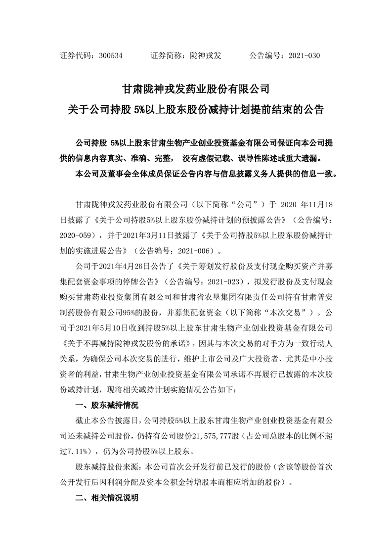 關(guān)于公司持股5%以上股東股份減持計劃提前結(jié)束的公告