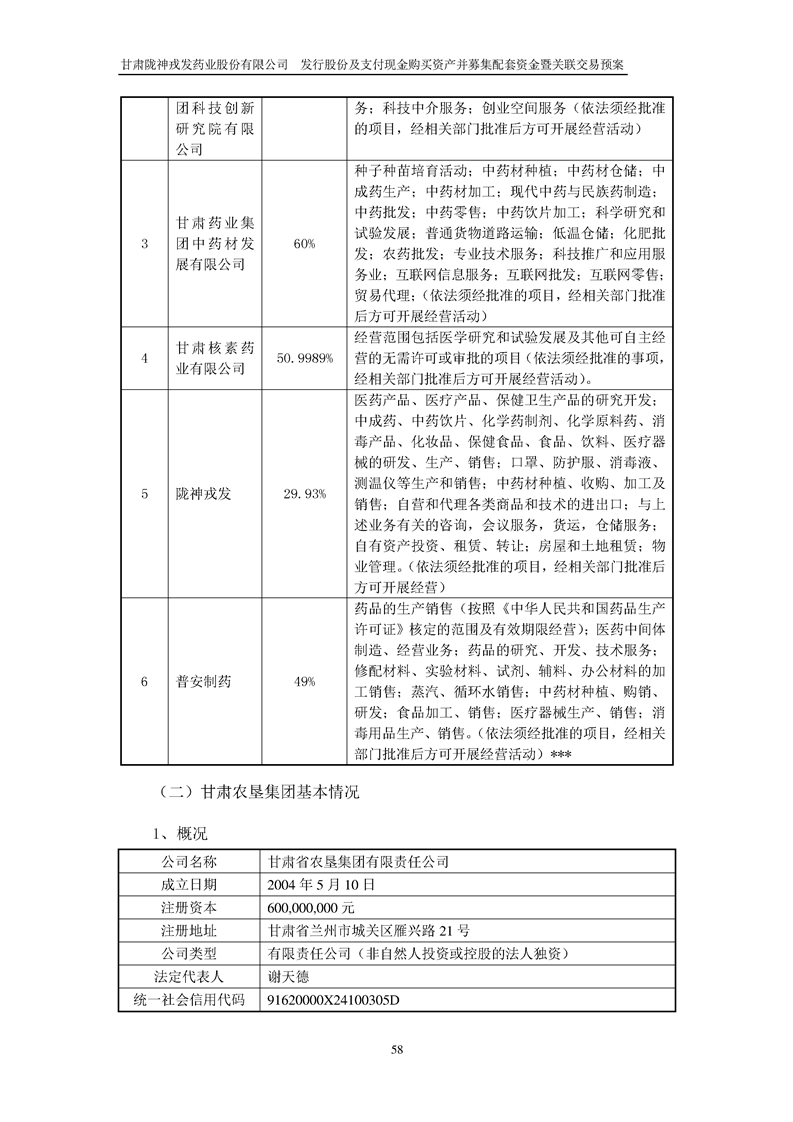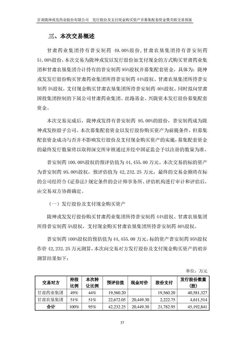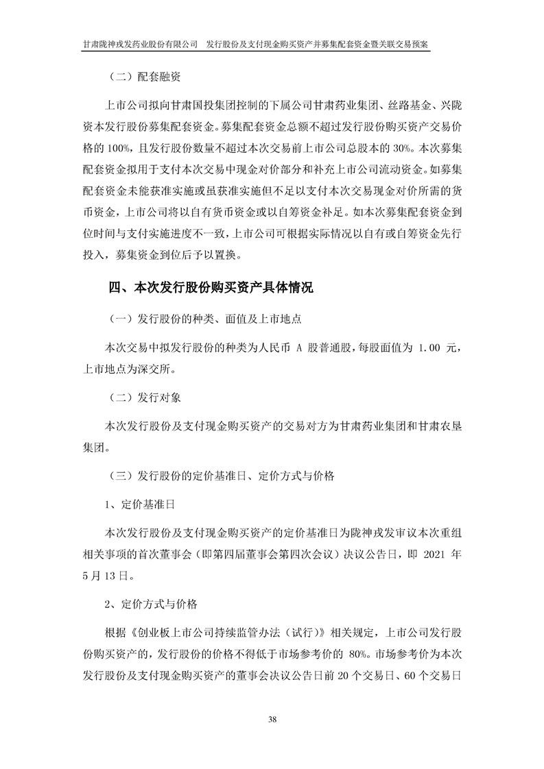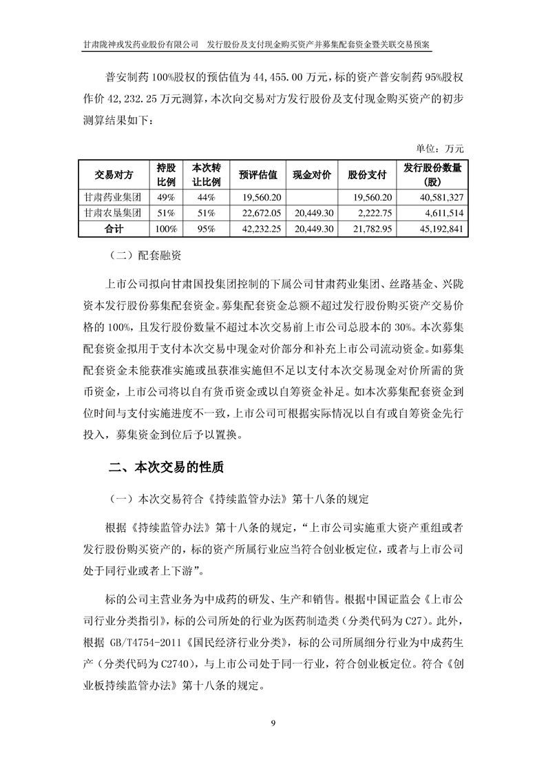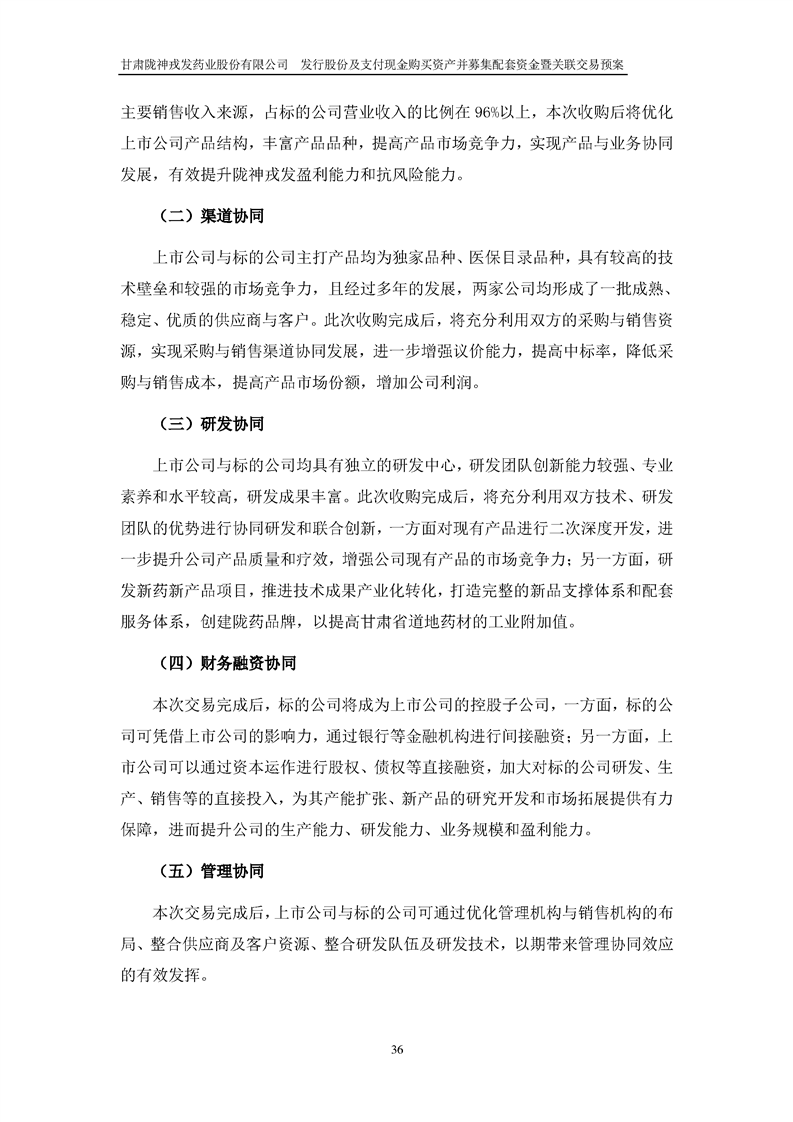 甘肅隴神戎發(fā)藥業(yè)股份有限公司發(fā)行股份及支付現(xiàn)金購買資產(chǎn)并募集配套資金暨關(guān)聯(lián)交易預(yù)案