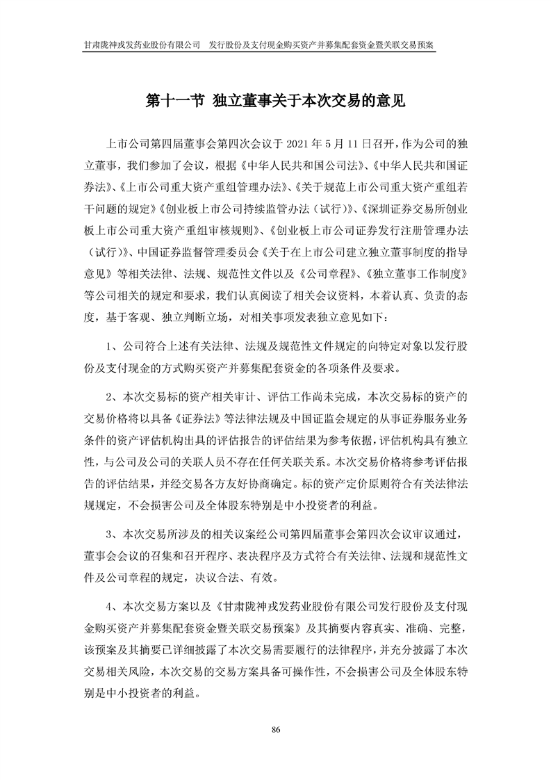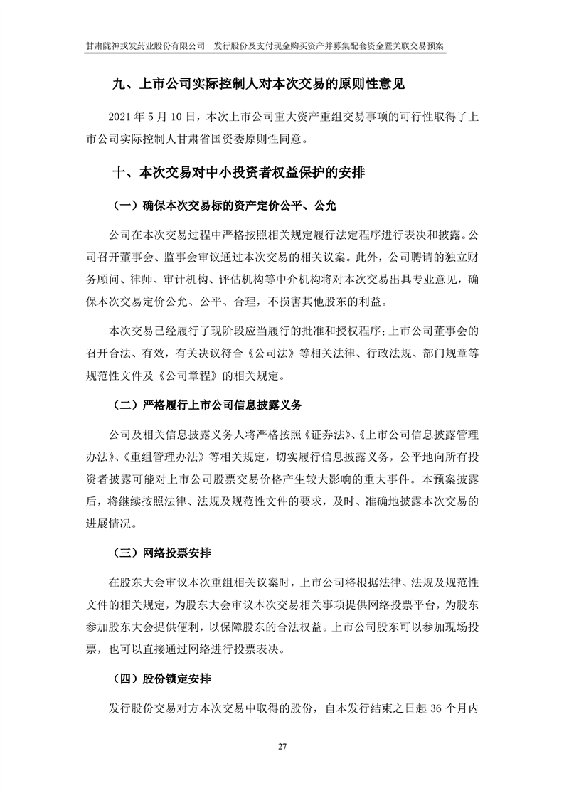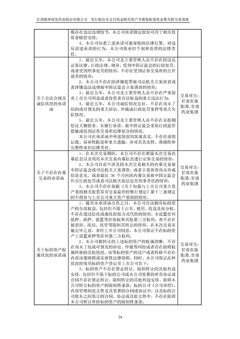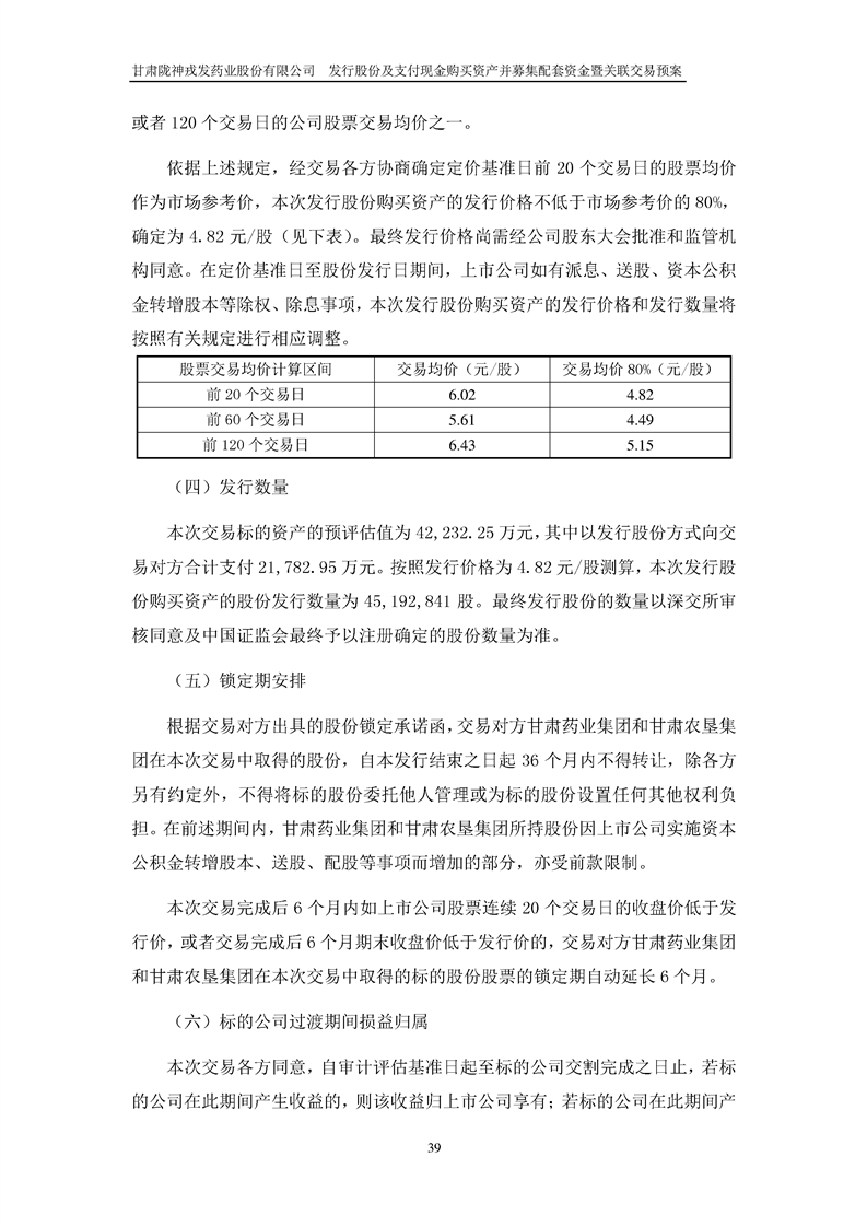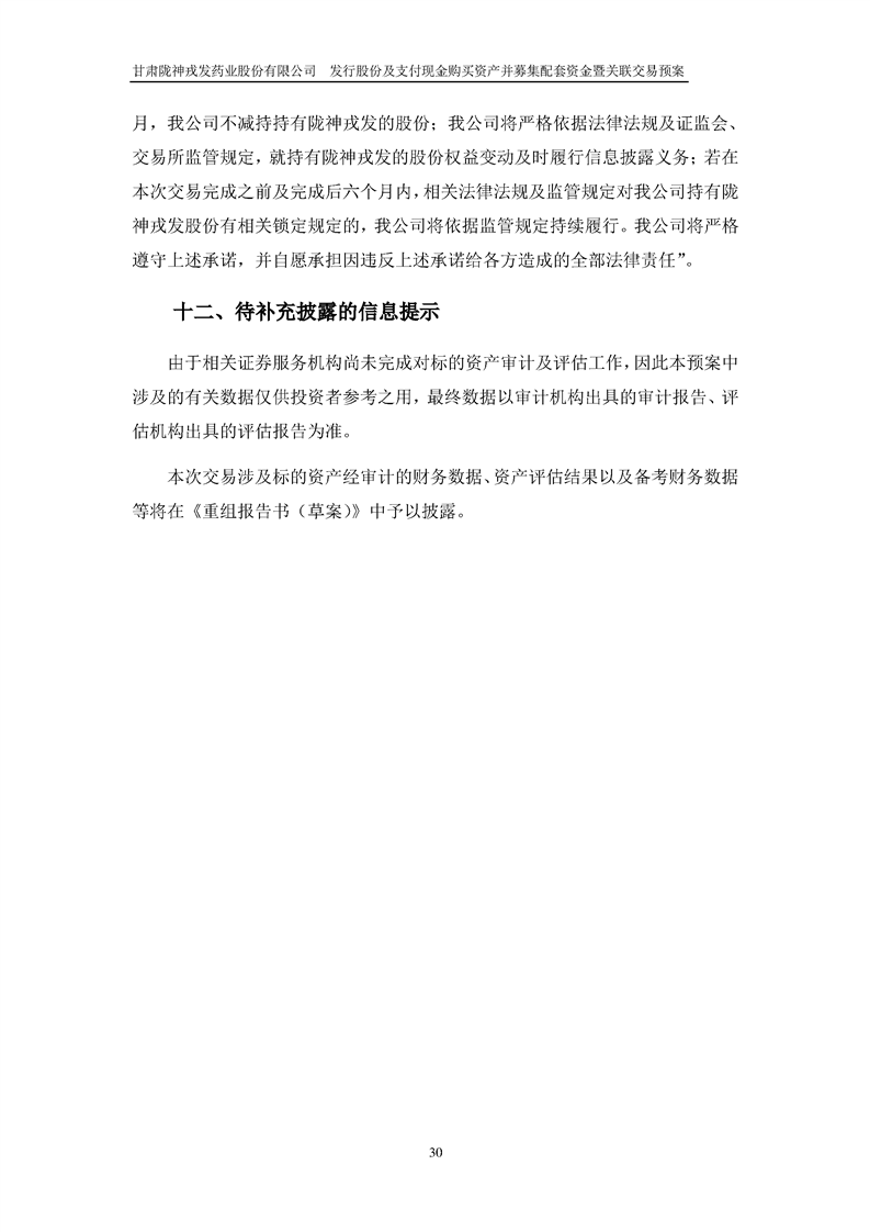甘肅隴神戎發(fā)藥業(yè)股份有限公司發(fā)行股份及支付現(xiàn)金購買資產(chǎn)并募集配套資金暨關(guān)聯(lián)交易預(yù)案