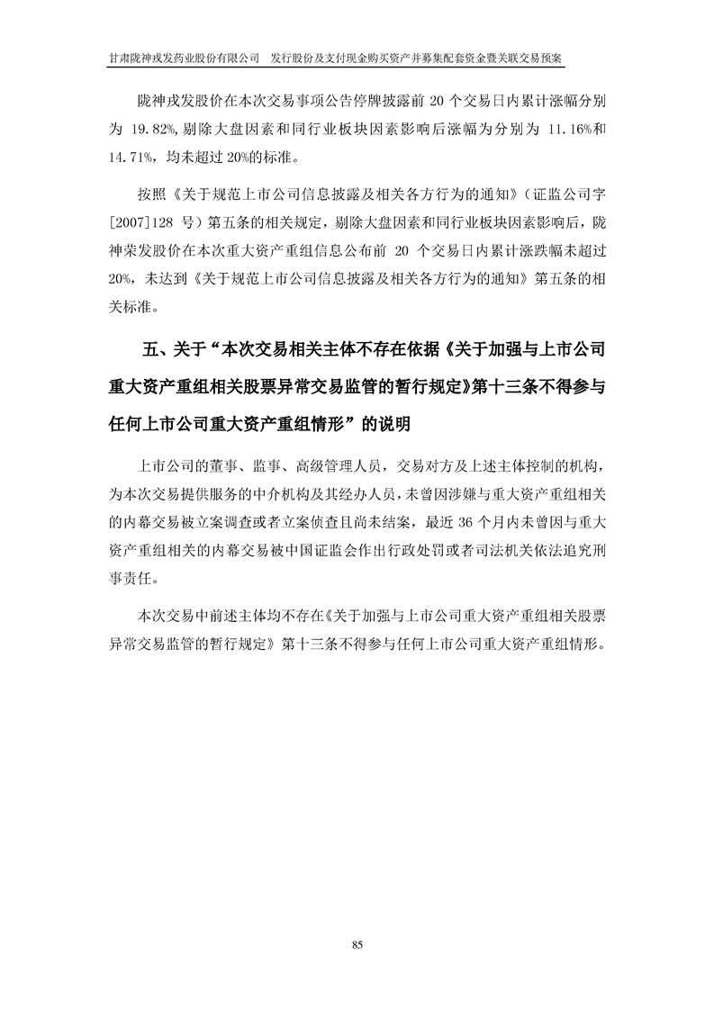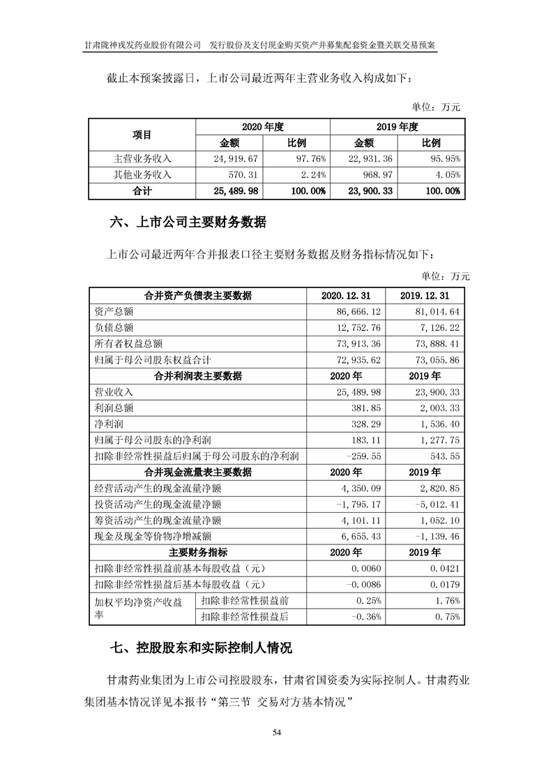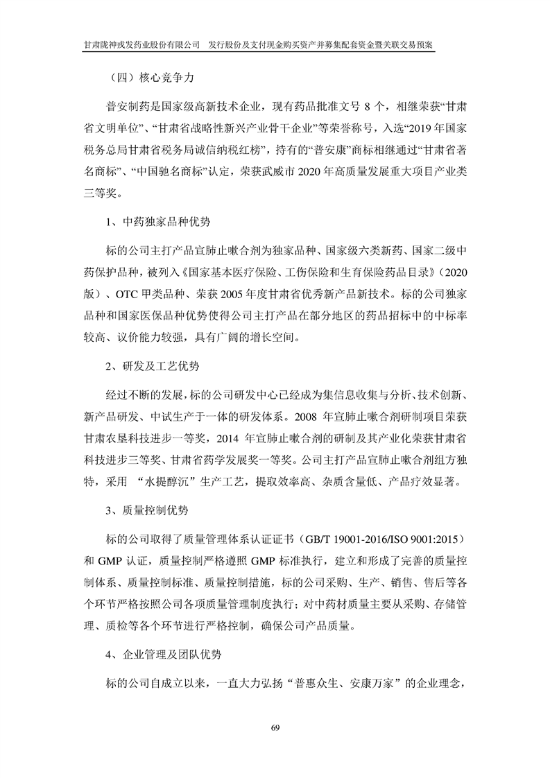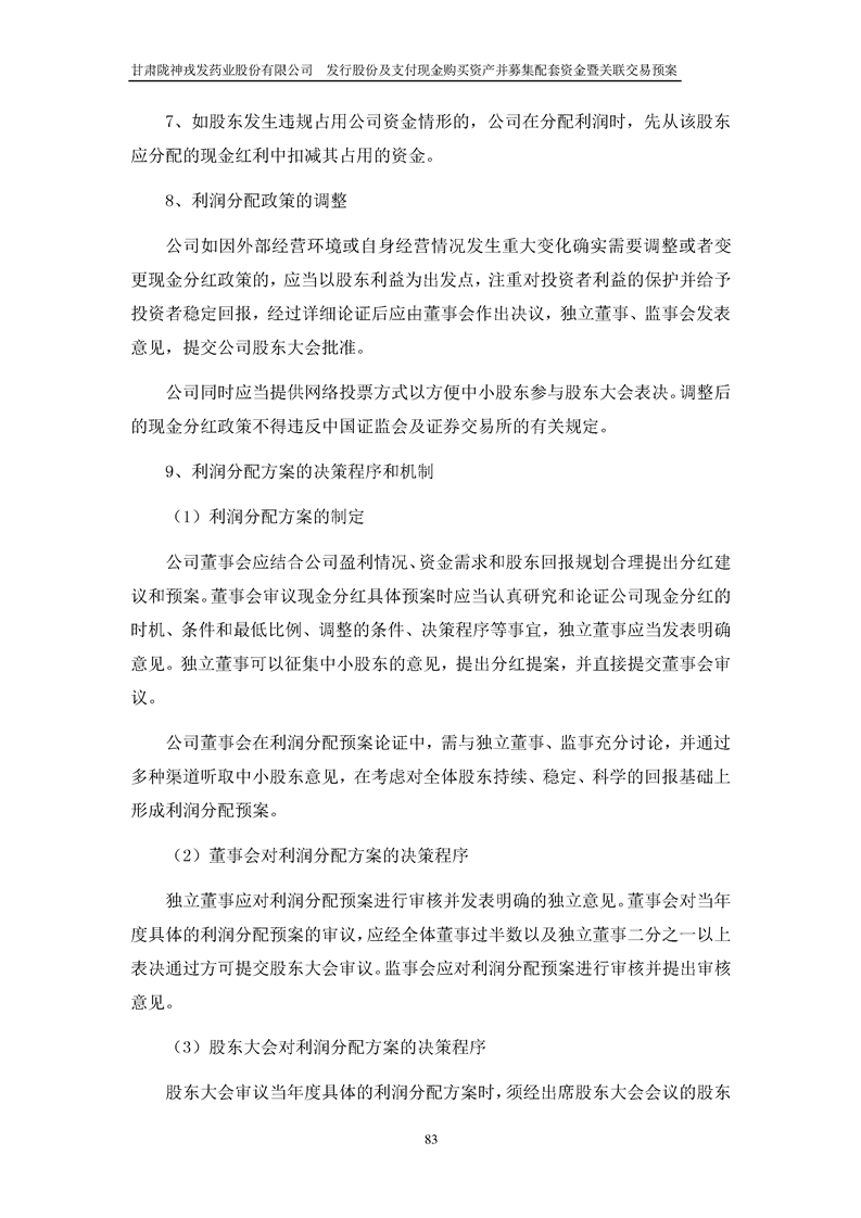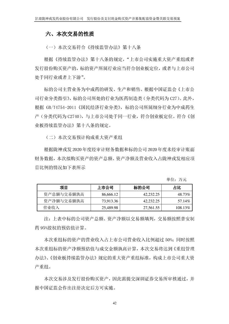 甘肅隴神戎發(fā)藥業(yè)股份有限公司發(fā)行股份及支付現(xiàn)金購買資產(chǎn)并募集配套資金暨關(guān)聯(lián)交易預(yù)案