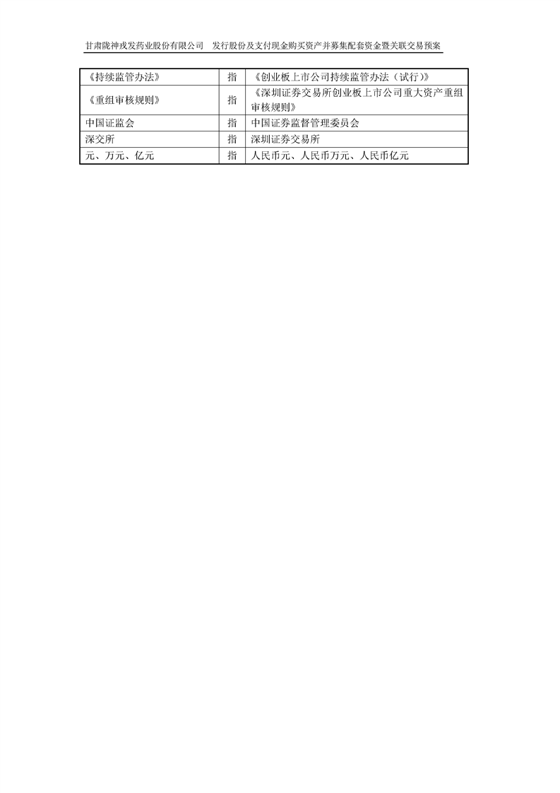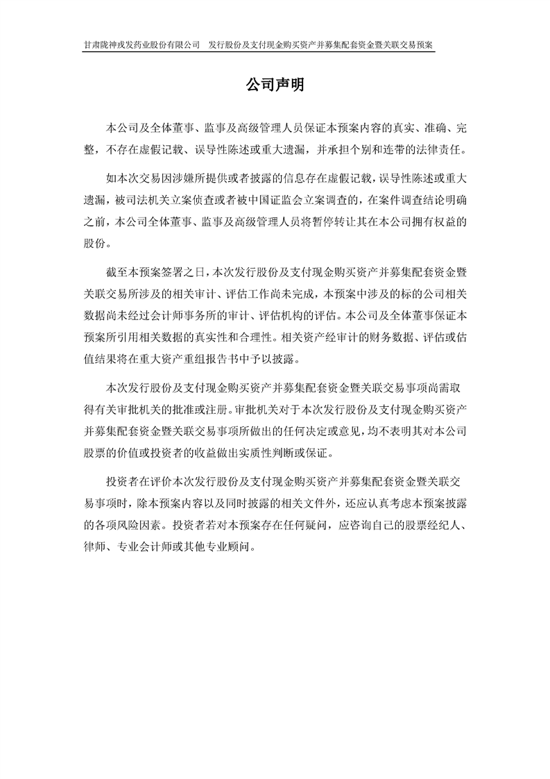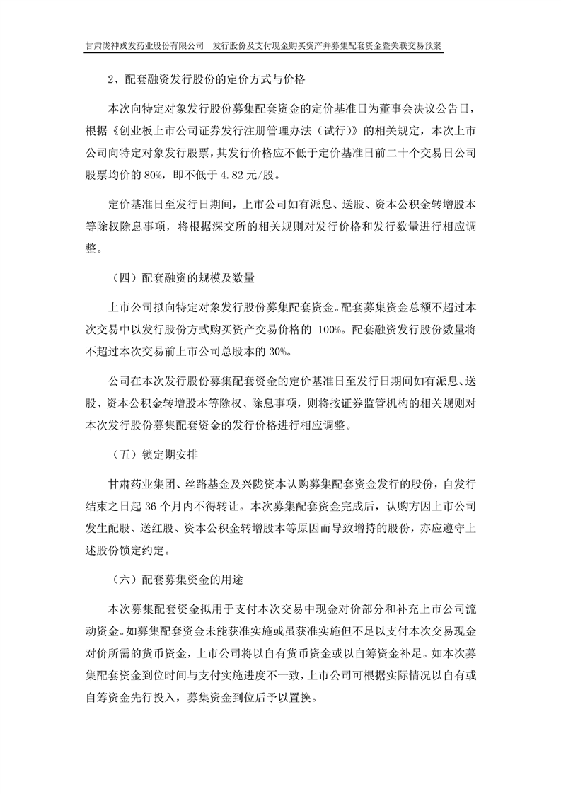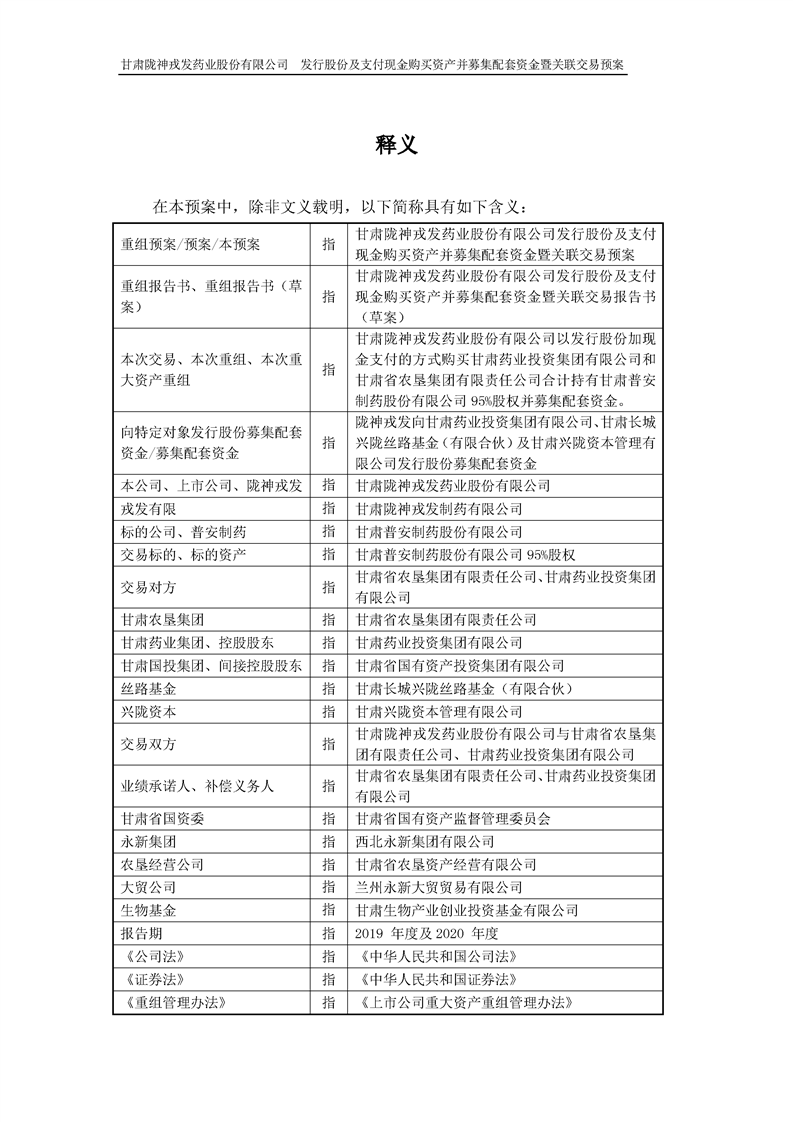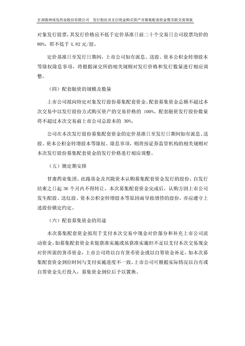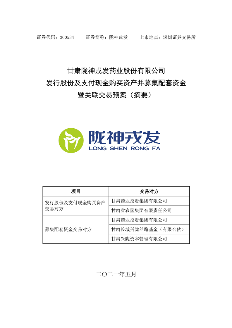 甘肅隴神戎發(fā)藥業(yè)股份有限公司發(fā)行股份及支付現(xiàn)金購(gòu)買資產(chǎn)并募集配套資金暨關(guān)聯(lián)交易預(yù)案 (摘要)