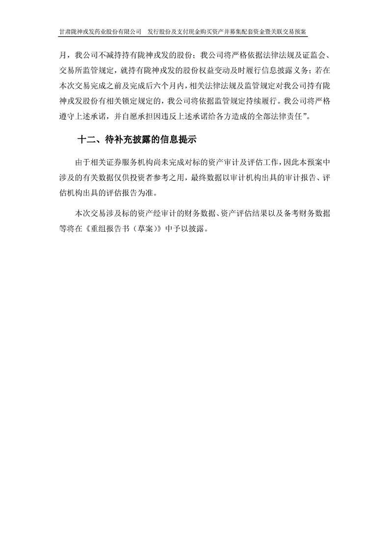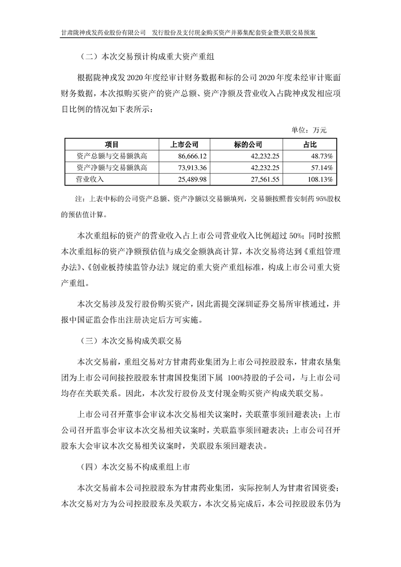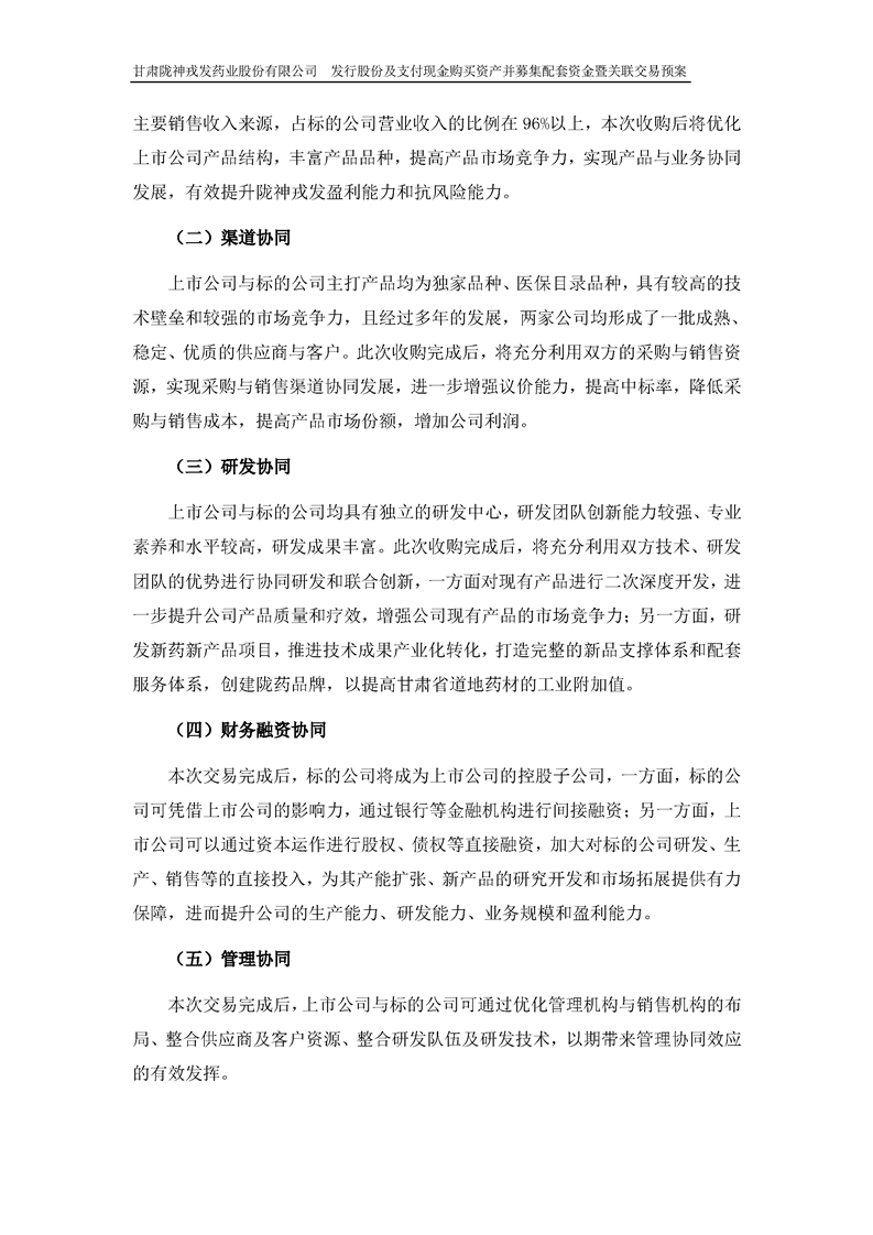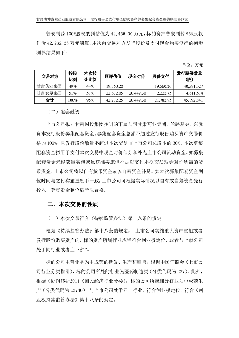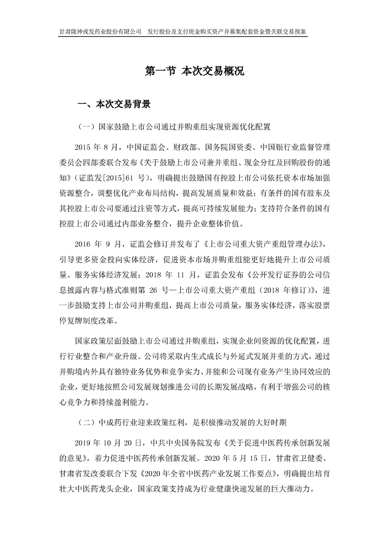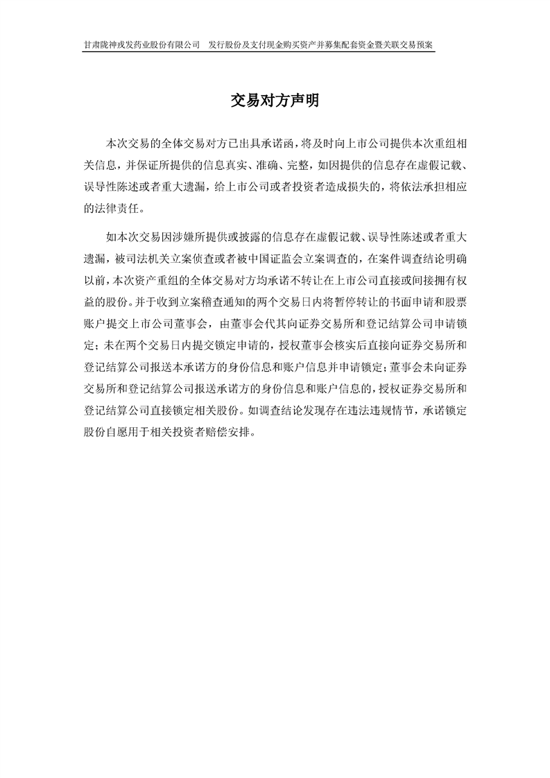 甘肅隴神戎發(fā)藥業(yè)股份有限公司發(fā)行股份及支付現(xiàn)金購(gòu)買資產(chǎn)并募集配套資金暨關(guān)聯(lián)交易預(yù)案 (摘要)
