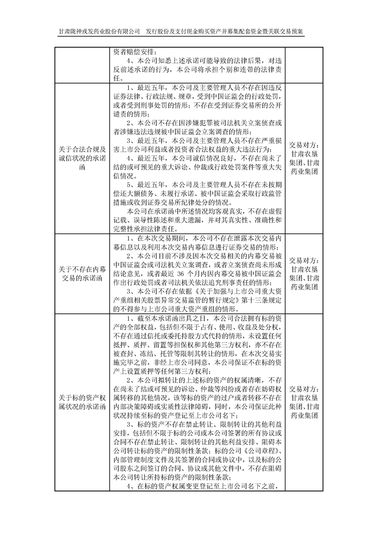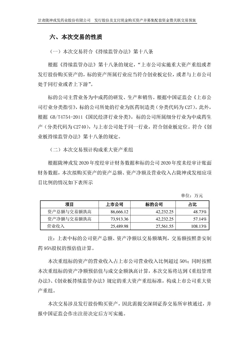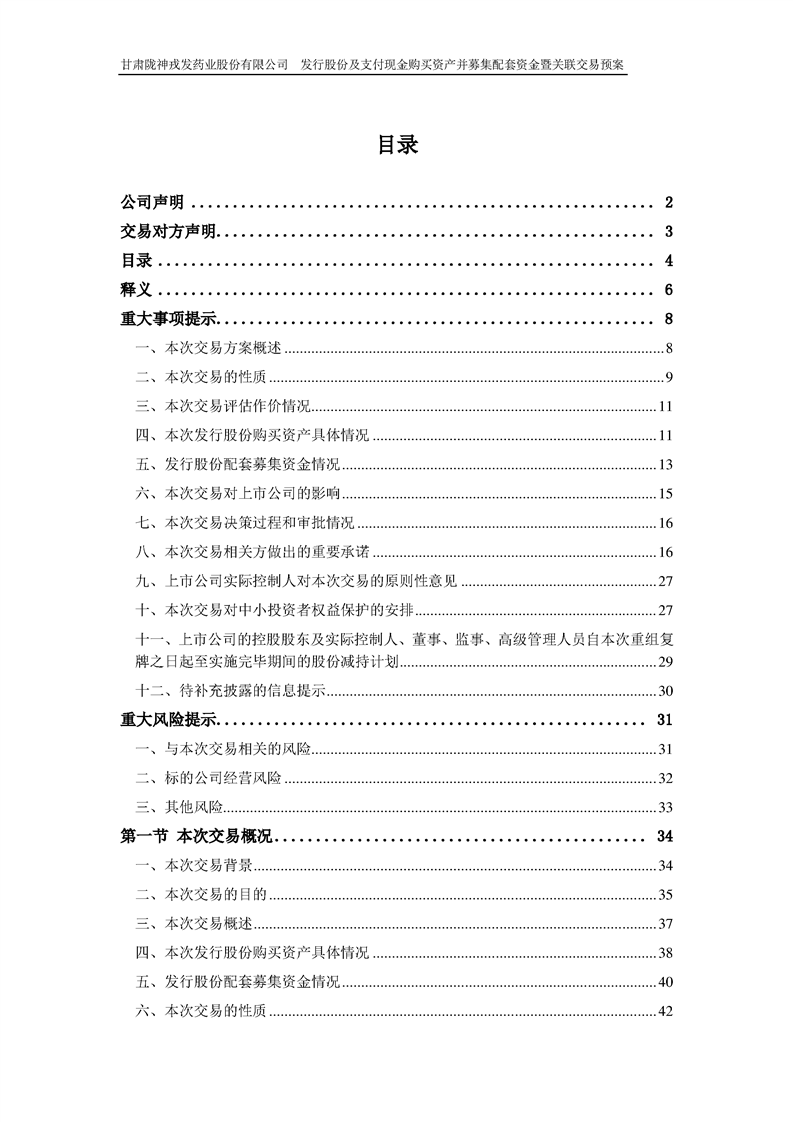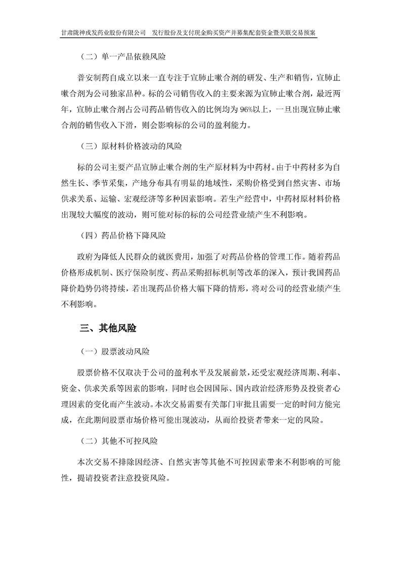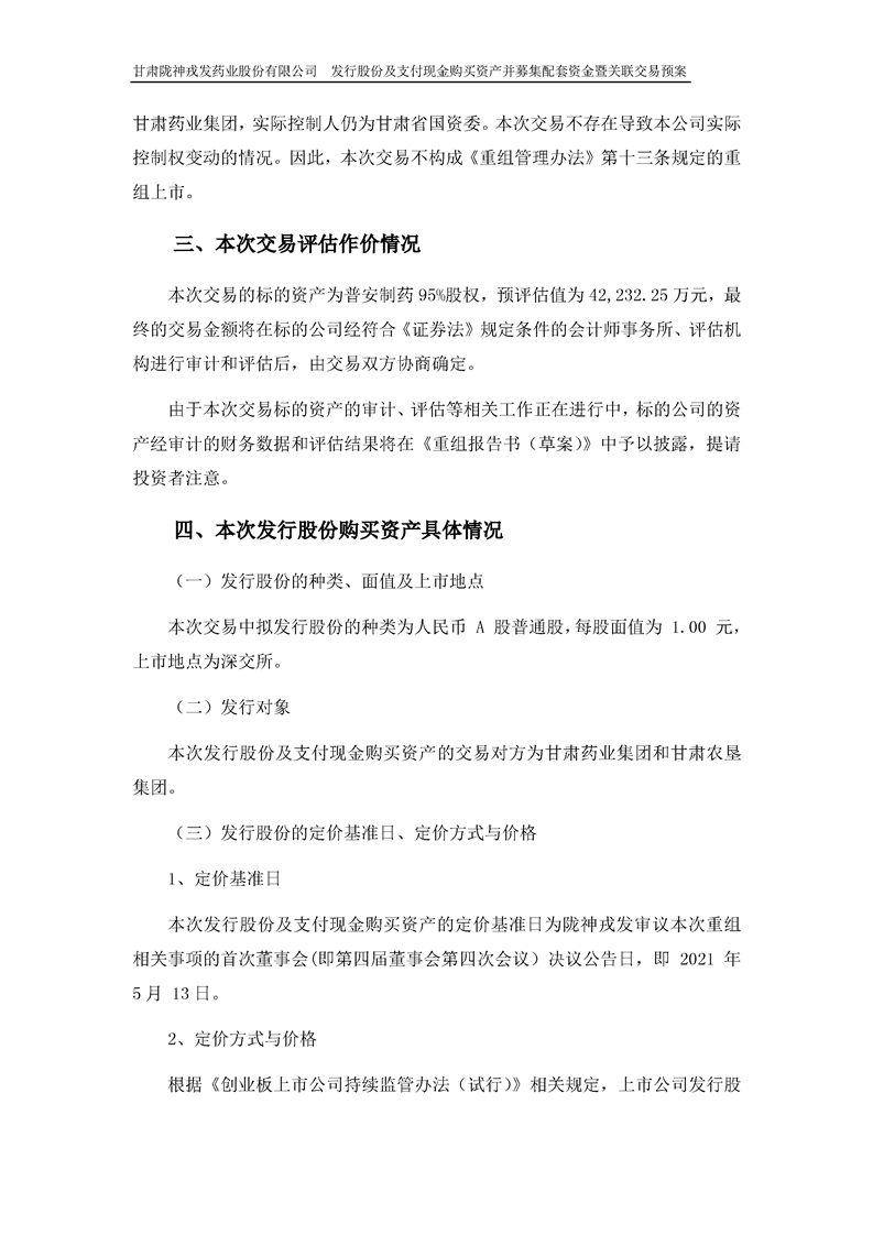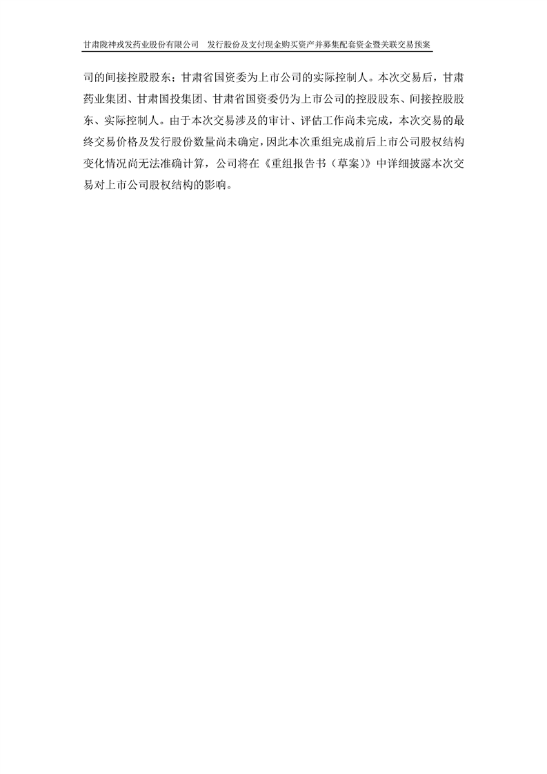 甘肅隴神戎發(fā)藥業(yè)股份有限公司發(fā)行股份及支付現(xiàn)金購(gòu)買資產(chǎn)并募集配套資金暨關(guān)聯(lián)交易預(yù)案 (摘要)