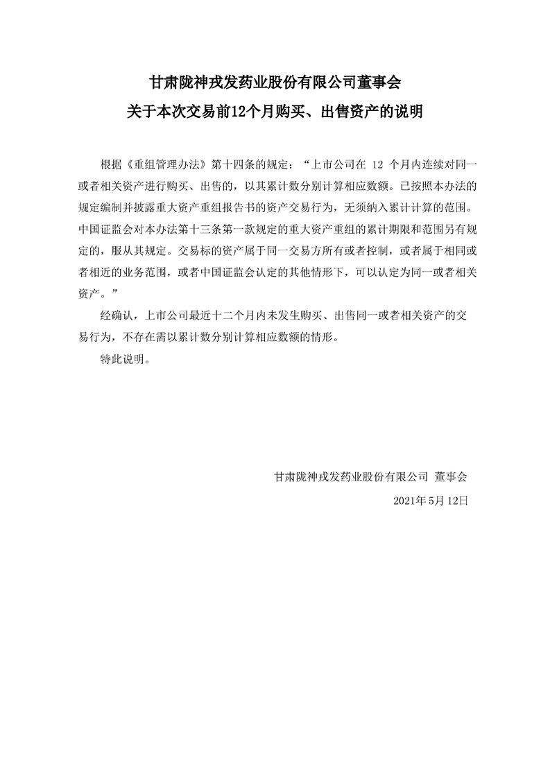 董事會關(guān)于本次交易前12個月購買、出售資產(chǎn)的說明